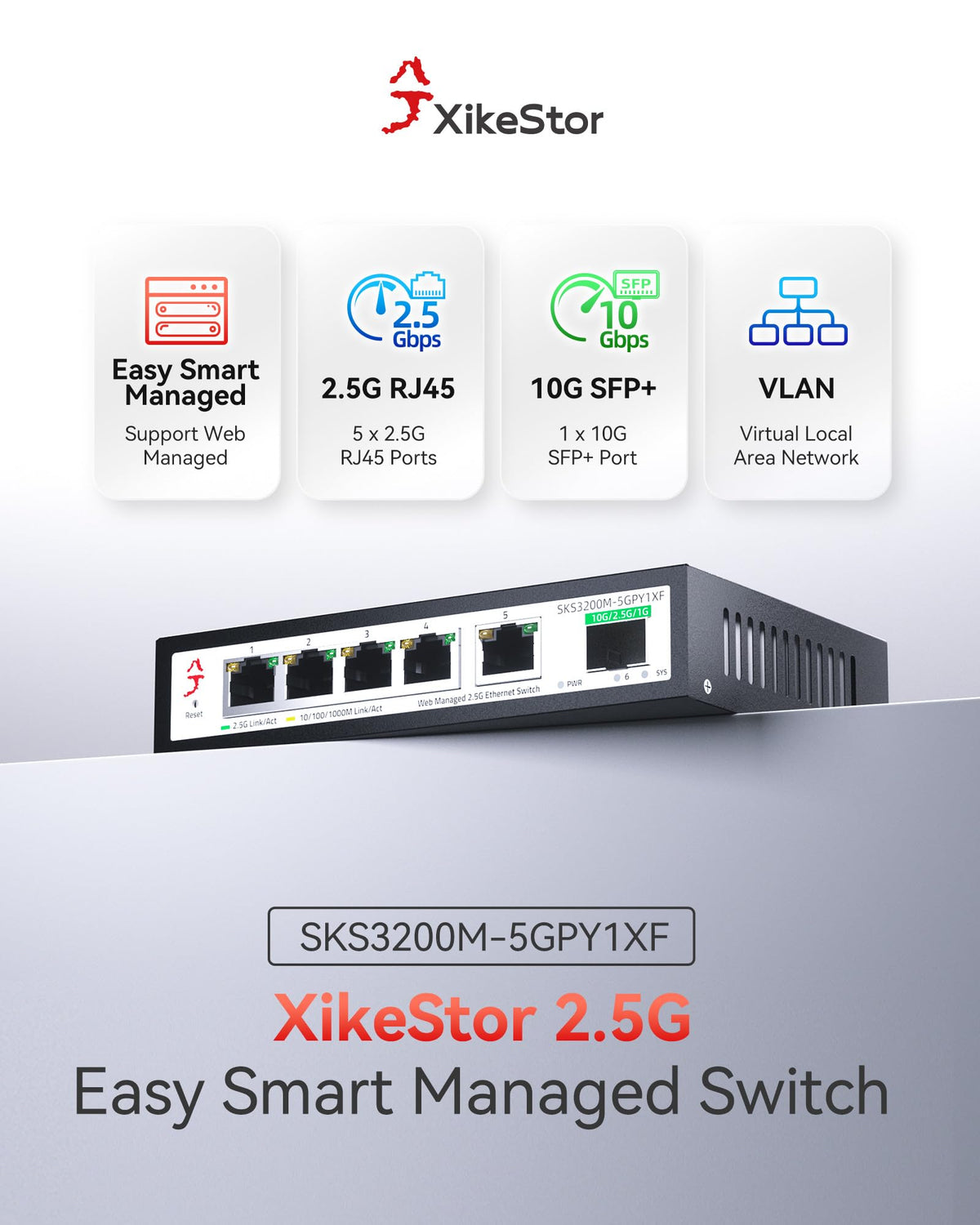 Xikestor 5 Port 2.5G Web Managed Ethernet Switch With 10G Sfp+, 2.5Gb Network Homelab Switch Support Lacp/Vlan/Qos/Stp/Igmp, 2.5