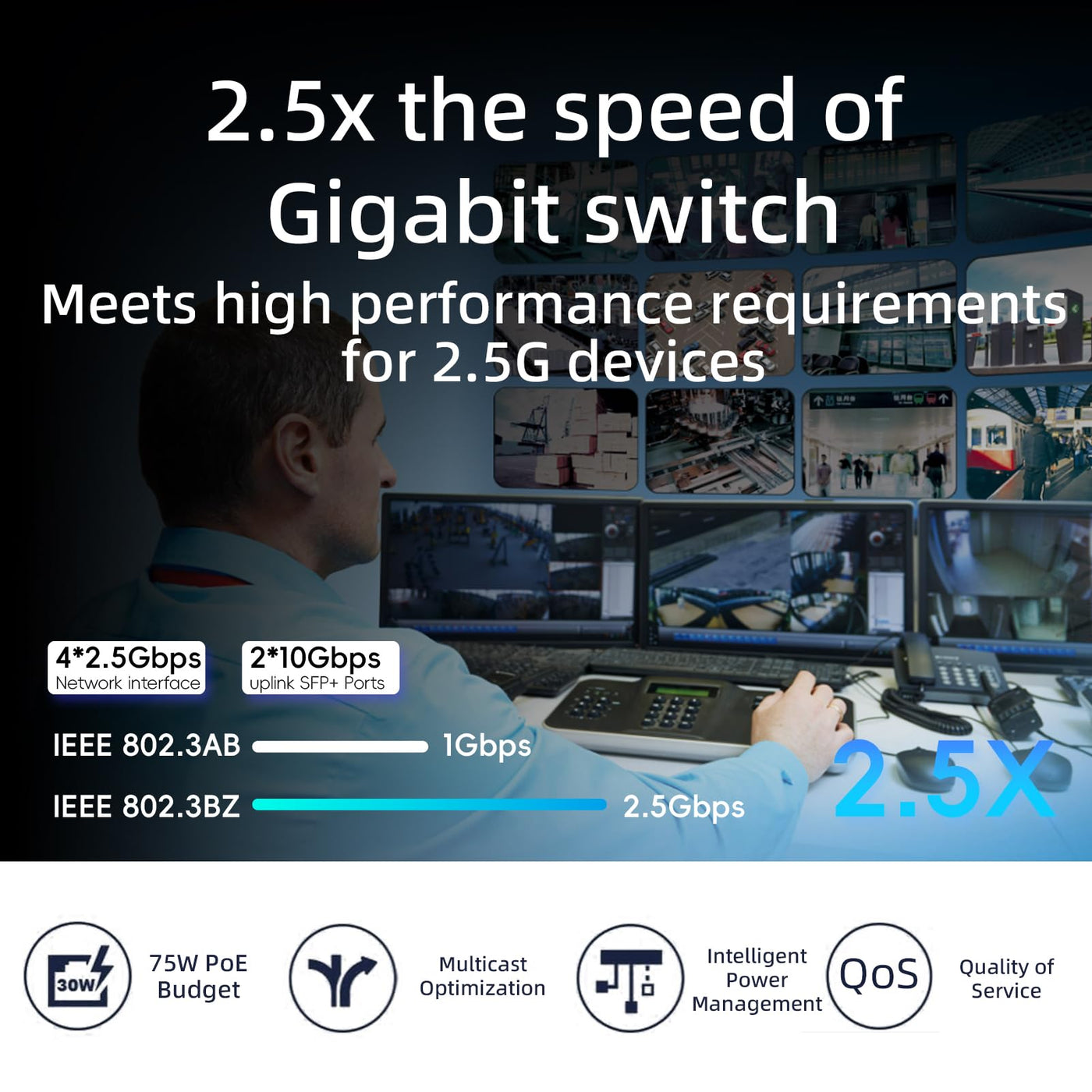Q: What types of devices can I connect to this PoE switch?A: You can connect a variety of PoE-enabled devices to the XikeStor switch, including IP cameras, access points, 2.5G PCIe adapters, and 2.5G servers. Its high total PoE power of 75W ensures that multiple devices can be powered efficiently over a single network cable.