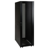 Q: Can I easily install and manage cables within the SR45UB Rack Enclosure?A: Yes, the SR45UB is designed with cable management in mind, offering adjustable vertical mounting rails for PDUs and cable managers, as well as cable ports in the top panel for organized routing.