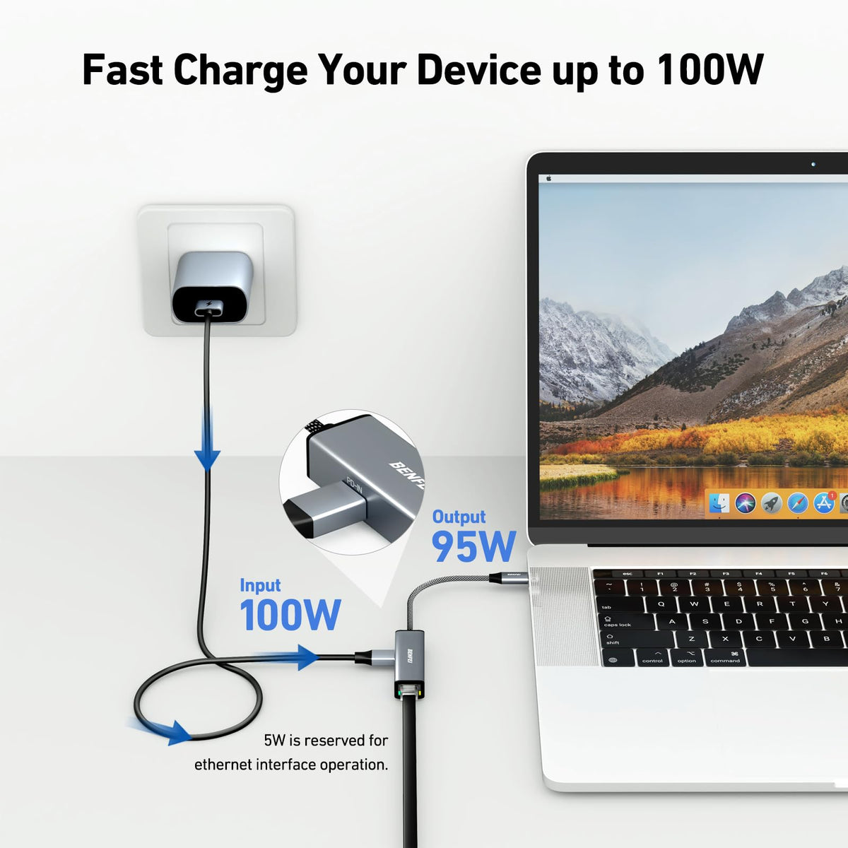 100W Charging Port: Charge Your Devices Quickly With Up To 100W Charging Port. With The Power Deliver Function, It Allows You To Simultaneous Charging And Connecting To Network, And You Don'T Have To Sacrifice Charging Capability When Connecting To The Network. (Note: If You Can'T Charge Your Device Or The Charging Rate Isn'T Reaching Its Maximum, Please Check The Protocol Support Of Your Device.) | Surfing At Full Speed: Obtain Stable Connection Speeds Up To 1 Gbps, Downward Compatible With 100Mbps/10Mbps/1Mbps. Our Type-C To Lan Gigabit Ethernet Rj45 Network Adapter Will Take Your Internet Surfing Up To The Next Level. Larger Downloads, Maximum Velocity, And No More Interruption. With Our Ethernet Adapter, Gigabit Connectivity Means Much More Than Just Fast Internet | Plug And Play: The Usb C To Lan Adapter Does Not Need To Install Drivers, Suitable For Windows 11/10/8.1/8, Macos, Chrome Os And Android Systems. Crafted With A Braided Nylon Cable For Enhanced Durability, Features Premium Aluminum Casing For Superior Heat Dissipation. Just Plug In And Enjoy Smooth Wired Networking. | Widely Compatible: Benfei Usb-C To Ethernet Adapter Is Compatible With Most Laptops, Tablets, Smartphones, Nintendo Switch, And Steam Deck With Usb-C Or Thunderbolt 3 Port, Like Iphone 15/15 Plus/15 Pro/15 Pro Max, Macbook Pro, Macbook Air, Mac Mini 2023 (M2), Pixelbook, Chromebook, Galaxy Tab S8 Tablet, And Galaxy S22/S23 Ultra/S22+/S22, Etc. | 18 Month Warranty: Exclusive Benfei Unconditional 18-Month Warranty Ensures Long-Time Satisfaction Of Your Purchase; Friendly And Easy-To-Reach Customer Service To Solve Your Problems Timely