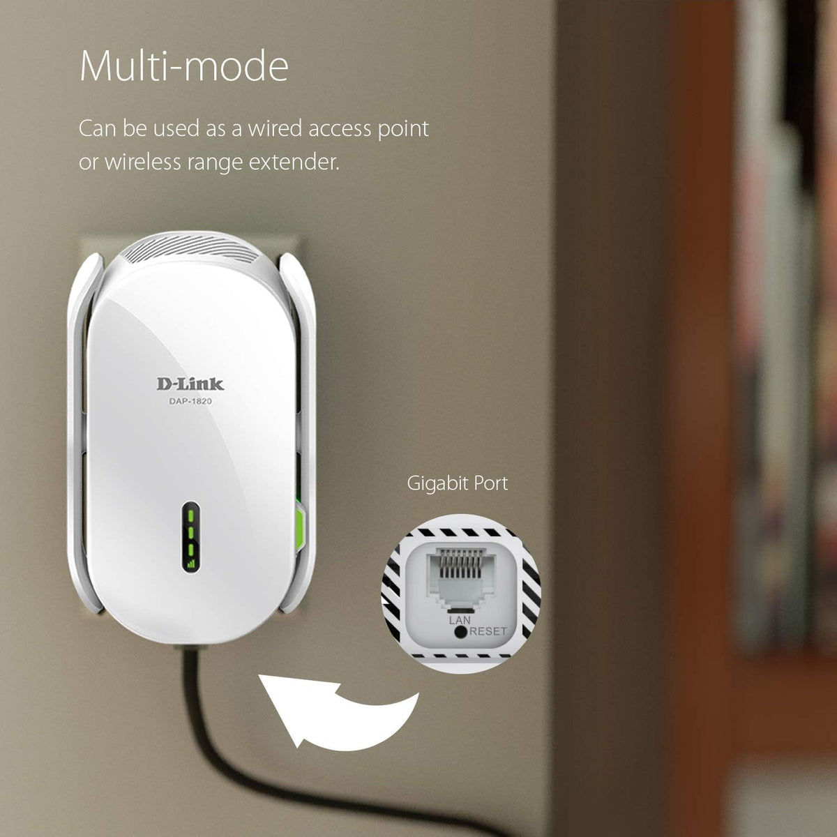 The Dap-1820-Us Ac2000 Wi-Fi Range Extender Is A Portable Plug-In Repeater That Lets You Extend An Existing Wireless Network. You Can Place It Anywhere In Your Home To Increase The Range Of Your Wireless Network. Tiny Yet Powerful, It Supports Wireless Ac Speeds Of Up To 2000 Mbps, Yet Fits In The Palm Of Your Hand.