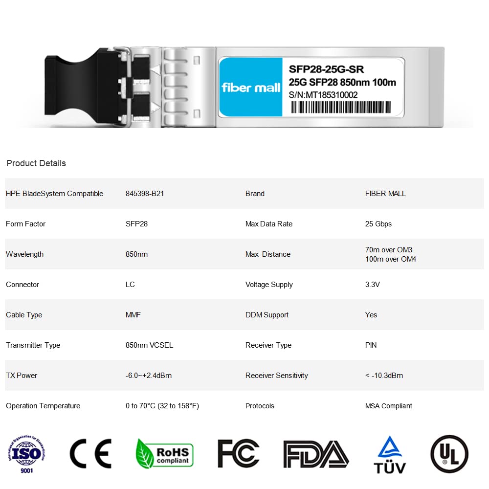 What If You Could Increase The Speed In Your Data Center Interconnects By 2.5 Times While Reducing The Amount Of Hardware Required? The Hpe 25Gb Sfp28 Transceiver Is Designed To Meet The Increasing Demand Of Higher Bandwidth In The Data Center. The 2.5X Bandwidth Performance Over 10Gbe Allows A Reduction Of The Number Of Cables And Connection Ports Required To Achieve Higher Throughput. In Addition, Up To 100 M High-Speed, Efficient And Cost-Effective Connectivity Can Be Provided Using This Transceiver.Features 25Gb Sfp28 Transceiver Provides 25Gb/ S For Connections Up To 100M.Includes Lc Connector For Attaching Multi-Mode Duplex Fiber Optical Cable.Allows Power Dissipation Up To 3.5W.