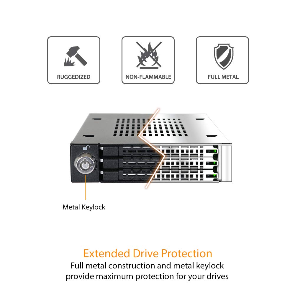 Triple bay 2.5' SAS/SATA HDD & SSD mobile rack for 3.5' front device bay. As generation progresses, more and more advanced computer technologies are constantly improving. These improvements include maximizing enhanced functions in smaller and compact packages. This is why 2.5' solid state drives and hard drives are becoming more popular due to its low power consumption and space-saving benefits, which are superior to 3.5? SATA hard drives in almost every Category. Combine with the extra bandwidth of the SSDs and the RAW power of the processors; enterprises are able to accelerate their project-development process more efficiently. Since 2.5' SSDs and adds have smaller storage capacities compared to 3.5' hard drives, maximizing the storage density in limited spaces have become the most important task for many storage consulting firms; a task they often encounters. The Tough arm or MB993SK-B is designed specifically for systems with storage space limitations by fitting 3 x 2.5? SSD / HDD into a single 3.5' front device bay, maximizing the entire space of 3.5' device bay. On top of that, the MB993SK-B is built with heavy duty full metal construction which is commercially suitable for medical & military systems, government agencies, industrial PCs, SMB workstations, VM workstations, mobile DVR systems, aerospace computers, automation systems and embedded systems.