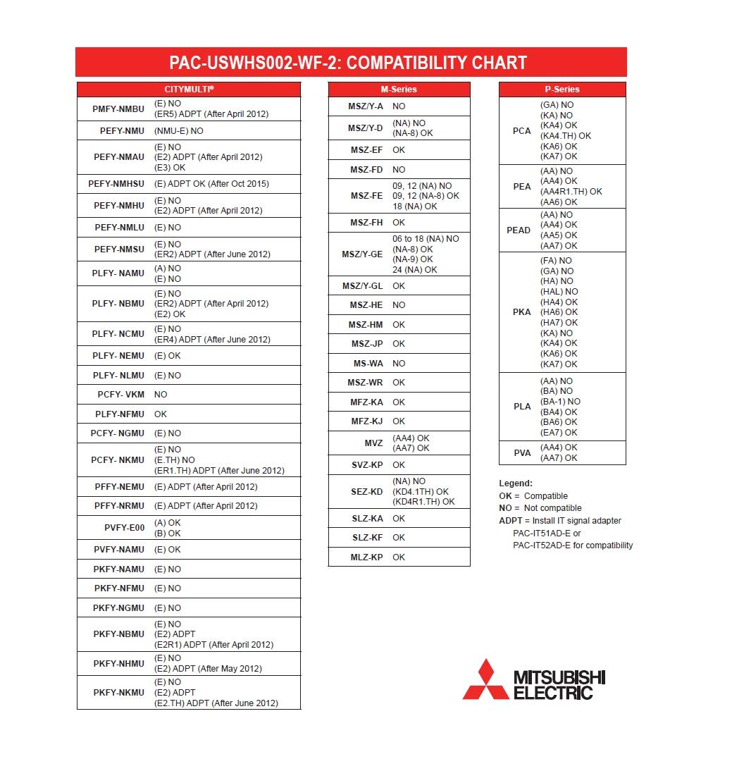 Mitsubishi Wireless Interface 2 Is The Latest Kumo Cloud Adapter That Gives You Complete Control Of Your Mitsubishi Mini-Split Systems. This Wifi Interface Adapter Facilitates Programming And Operation Of Your Mini-Split System Through A Wireless Or Local Network.This Latest Version Can Be Used Simultaneously With Mhk1. Due To The Power Requirements Of The Wireless Interface 2 And Mhk1, Only The Sez, Svz, Slz, Mvz, P-Series And City Multi Indoor Units Will Be Able To Power Both Devices (Mhk1 And Pac-Uswhs002-Wf-2) Requirements Compatible Mitsubishi Electric Indoor Units- See Remote Controller Compatibility Charts Wireless Router Mitsubishi Electric Wireless Interface (Pac-Uswhs002-Wf-2) Compatible Software Platforms With The Kumo Cloud App (Ios 8.0 Or Later, Android 4.1 Or Later, Fire Os 4.1 Or Later)