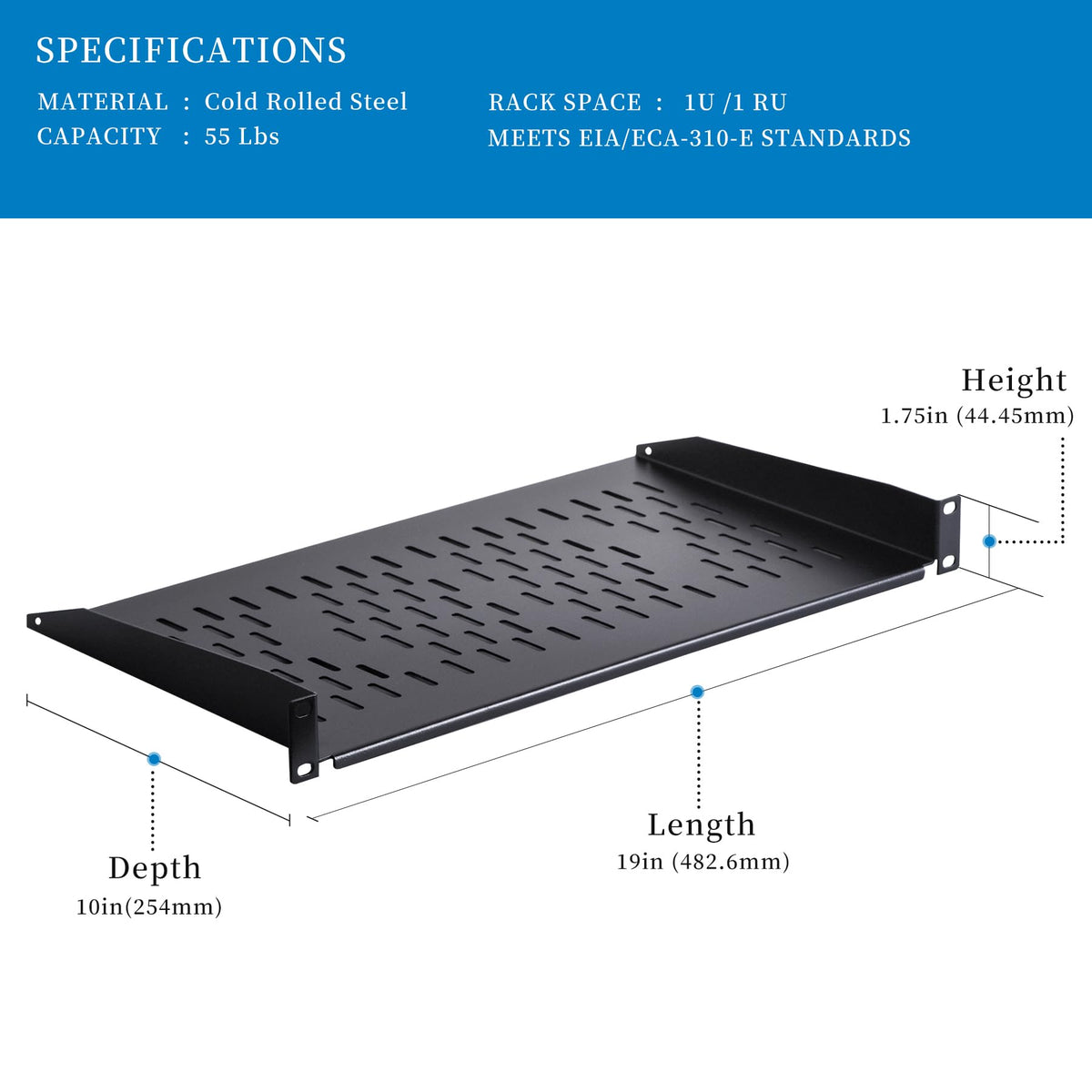 The Rackpath Cantilever Shelf Is Designed To Support Your Non-Rack Mountable Equipment In Your Rack Such As Routers, Modems, Tower Computers, Ups Systems And Monitors. The Vented Cantilever Tray Helps To Improve Air Flow And Keeps Your Equipment From Overheating. Constructed From Heavy Duty Cold Rolled Steel With A Durable Black Electro-Static Powder Coated Finish, The Shelf Has A Maximum Weight Capacity Of 55Lbs(25Kg). All Mounting Hardware Is Included.