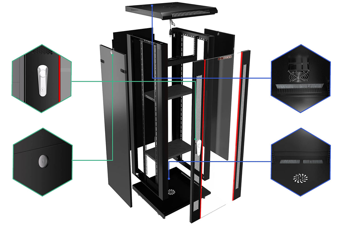 Computer Cabinet Wall Mount 18-Inch Depth Sysracks Srw 450 The Technical Parameters And Quality Of This Small Server Rack Will Meet Your Next It Project Requirements As Well As Allow You To Stay Within Your Initial Budget. Can Be Used As A Standing Home Server Rack Or Wall Mounted Equipment Rack With No Efforts. Highlights: 18-Inch Deep Electronics Rack Sturdy Welded Frame Structure Over $90 Accessory Kit Included Affordable And High Quality Multifunctional Security Cabinet Features: 8-Outlet Rackmount Power Distribution Unit Heavy Duty Server Rack Shelf Dust Tight Brush Type Cable Entries Lockable Front Door And Side Panels Cooling Fan Heavy Duty Levelling Feet A Set Of Cage Nuts Screws Glass Front Door U-Mark Mounting Rails Adjustable For Up To 15 Inch Apart Dimensions: (24'W X 18'D X 35' H) Weight: Apprx - 80 Lbs Coating: Powder Paint With Decreasing And Anti-Corrosive Phosphate Ventilation: Active � A Cooling Network Rack Fan Preinstalled Into The Top, Passive � Air Flow Circulation Due To Perforated Front Door Supply - Flat Pack Load Capacity: Up To 180 Pounds Color: Black. Available Also: 6U, 9U, 12U, 18U, 22U, 27U, 32U, 37U,42U Different Depths, Colors And Configuration
