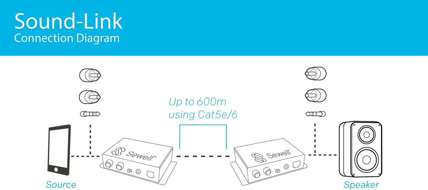 Sewell Sound Link Audio Over Single Cat5E Or Cat6, 3.5Mm Or Rca, 600M Or 2000 Ft, Bi Directional, Up To Two Inputs/Outputs Black