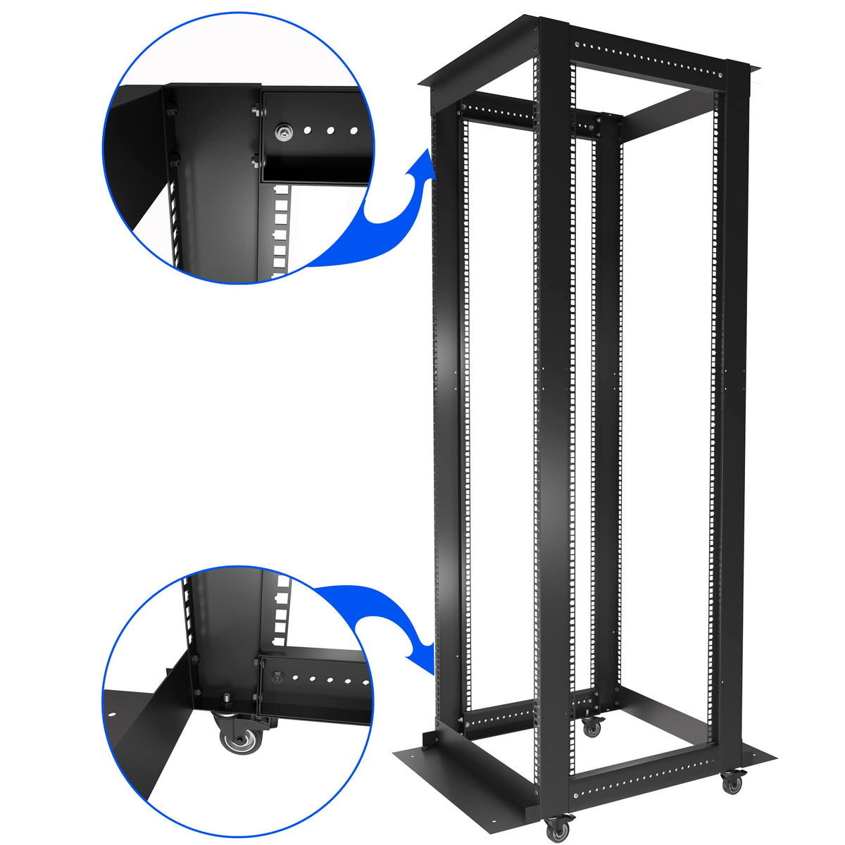 Sysracks 4 Post Open Frame Server Rack Mobile Relay With Wheels Casters For 19' Network Server Av It Equipment Gear Rack Cabinet Adjustable Depth 24' 37' (42U (79' H X 21' W))