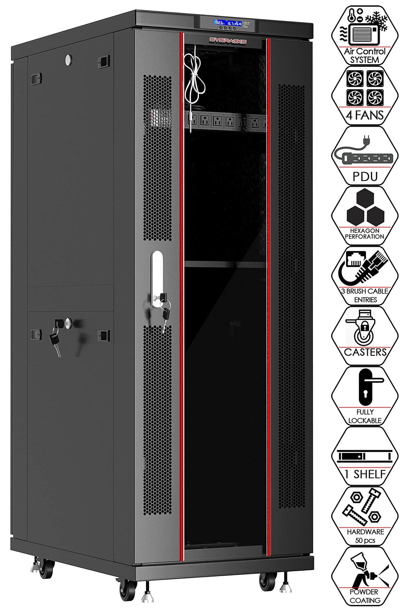 Sysracks Server Rack Network Cabinet Locking Deep Server Cabinet 32 Inch Depth Floor Network Rack On Wheels� Portable Computer Cabinet (32U (24' W X32 D X67))