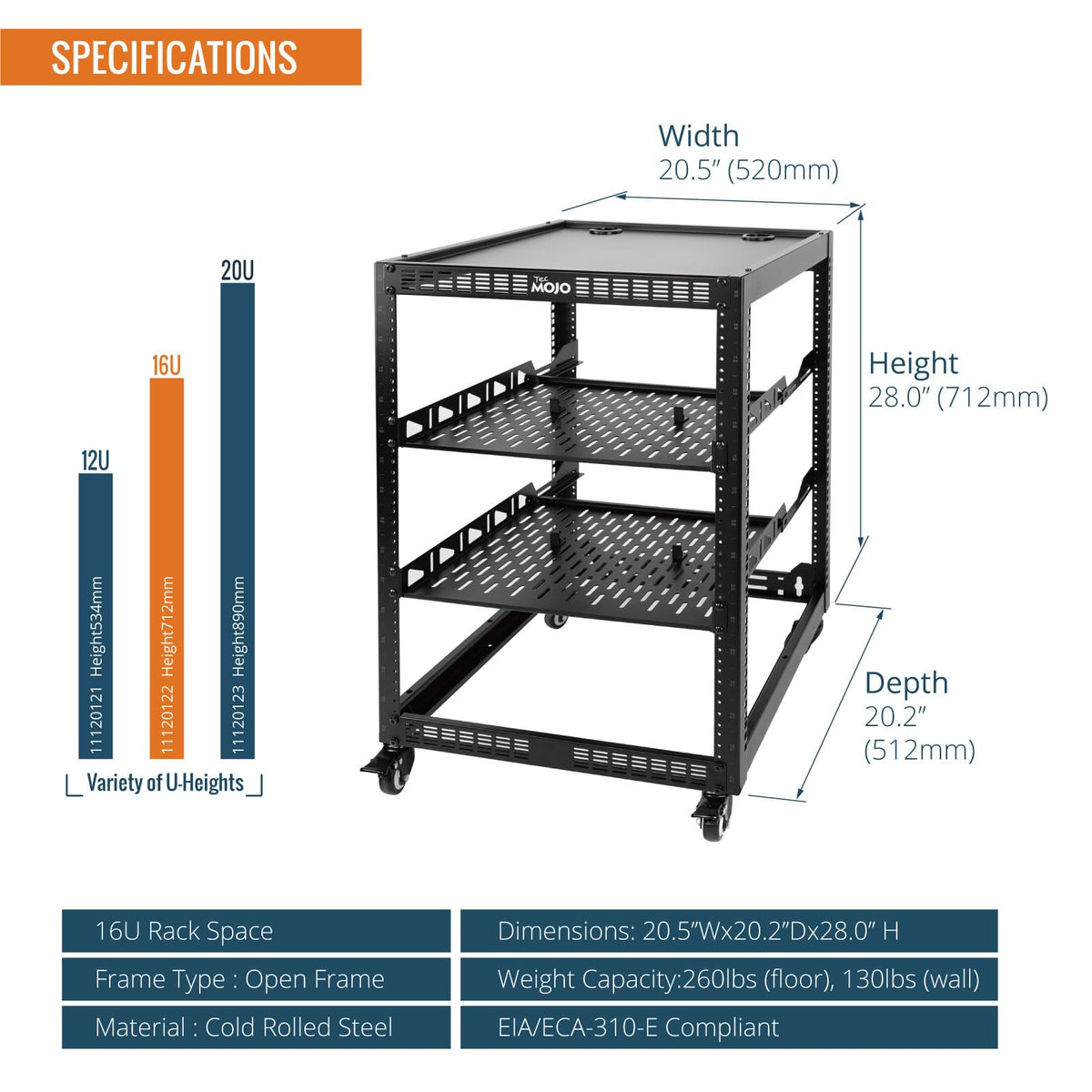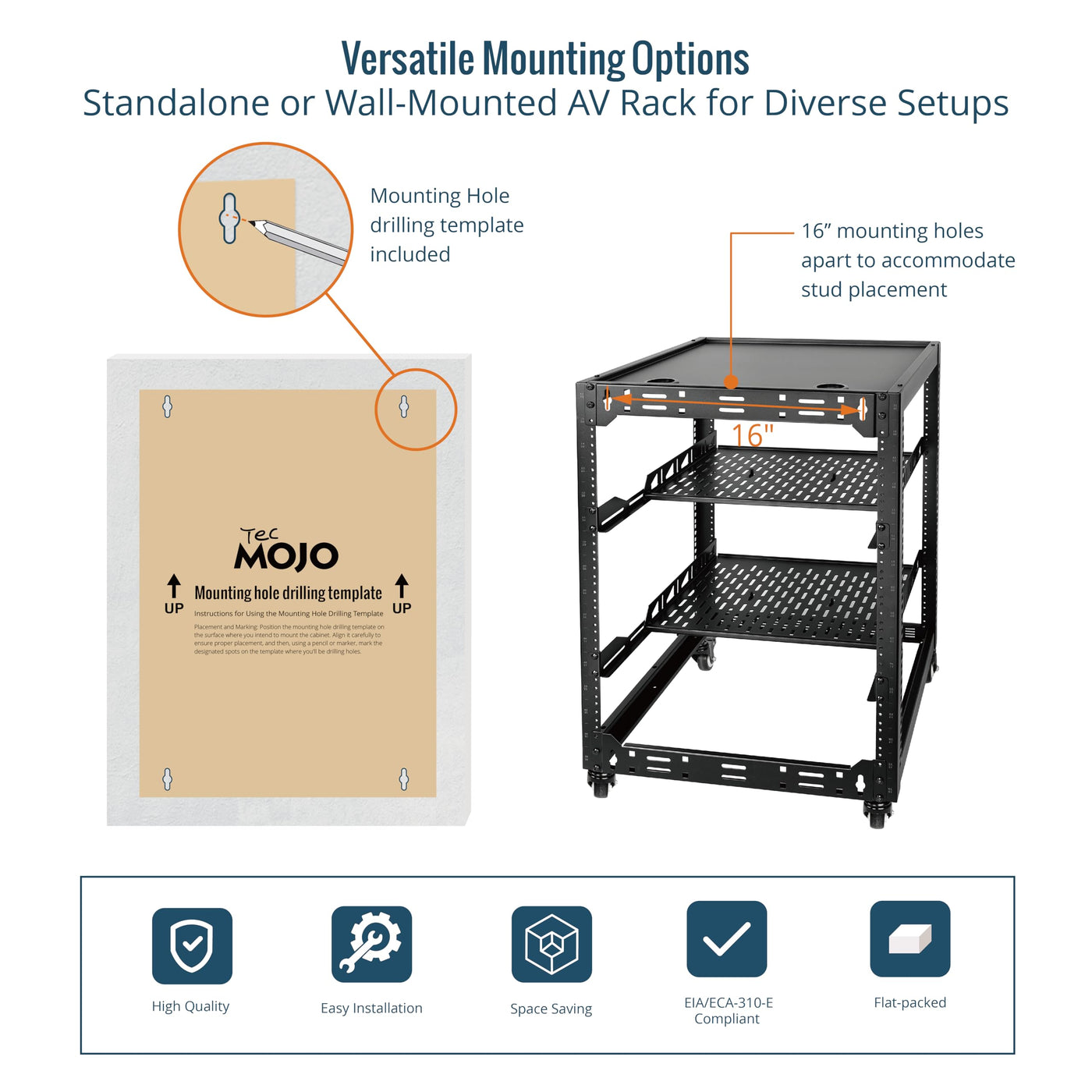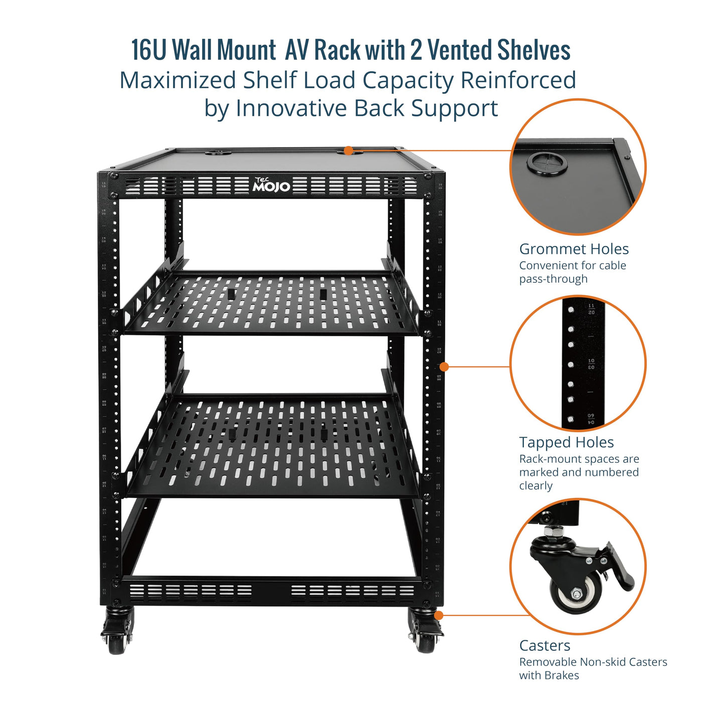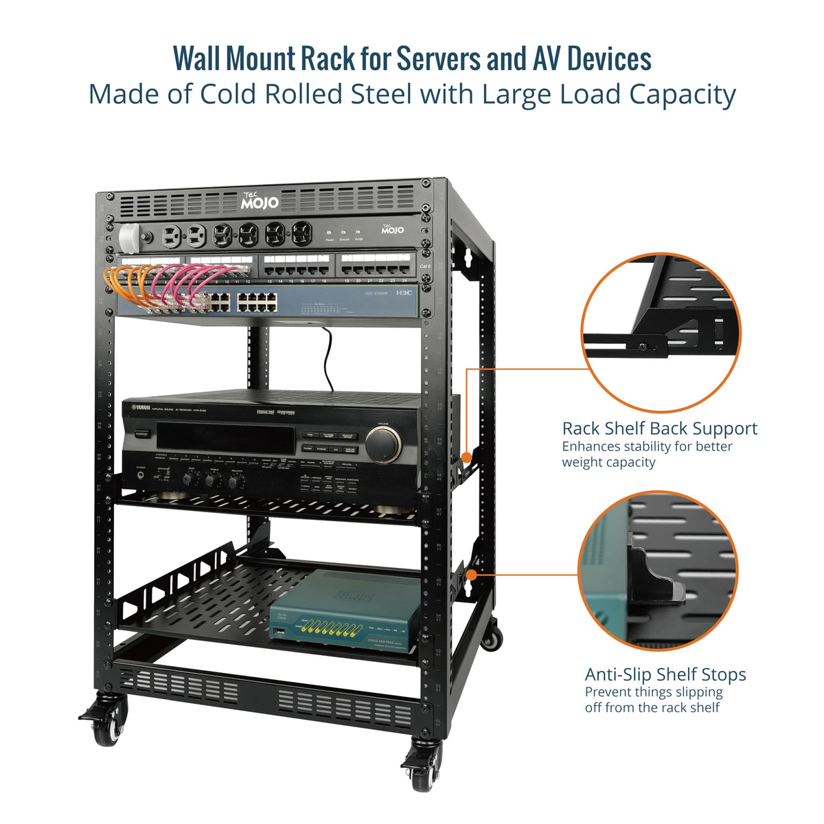 Tecmojo 16U Open Frame Network Rack For Servers&Av Gear, Server Rack 4 Post With Casters, Mobile Server Rack With 2 Pcs 1U Serve