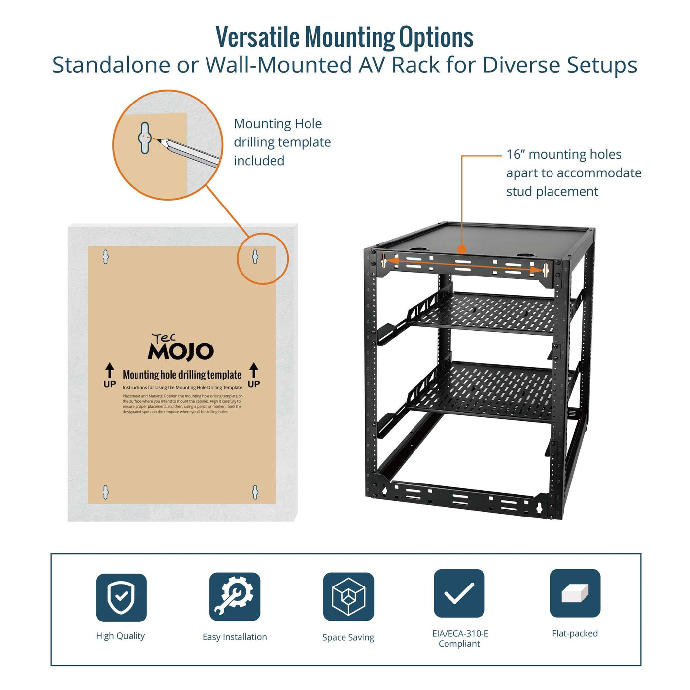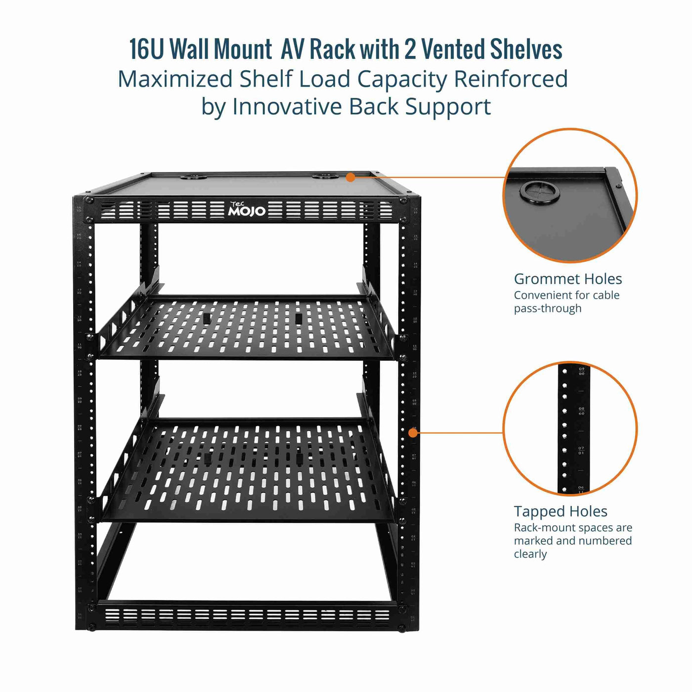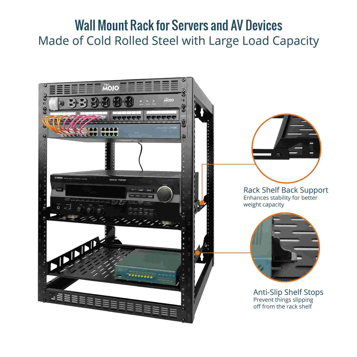 Tecmojo 16U Open Frame Rack For Servers & Av Gear,Server Rack Floor Standing Or Wall Mounted,With 2 Pcs 1U Rack Shelves & Mounti