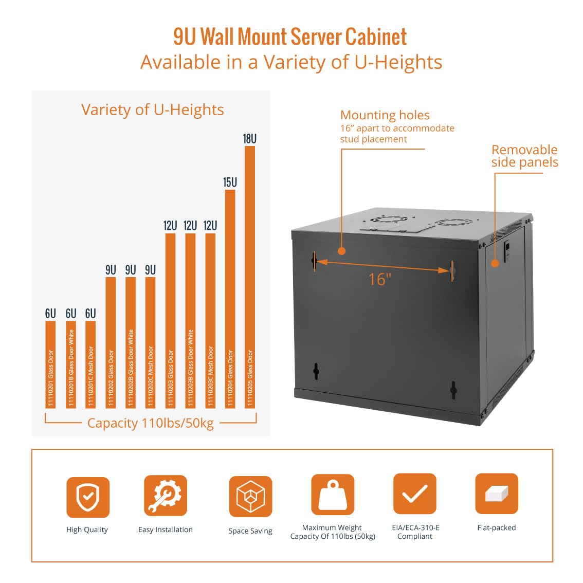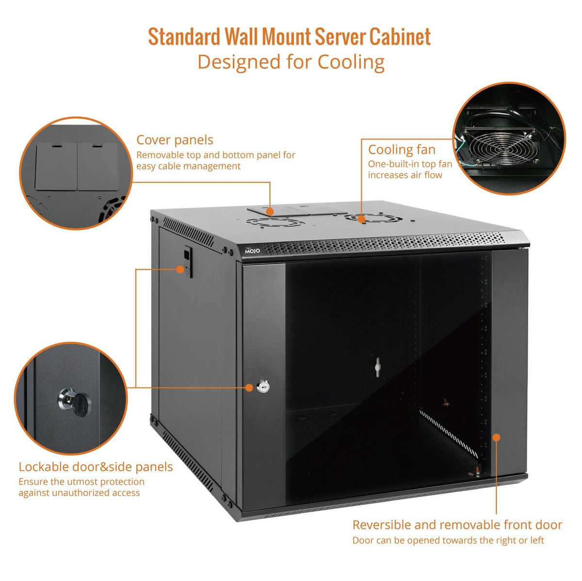 Tecmojo Wall-Mount Cabinets Are Designed To House, Secure And Organize The Eia-Standard 19-Inch Rack Devices In Classrooms, Retail Environment, Offices, And Other Locations With Limited Floor Space. The Frame Is Made From High Quality Cold Rolled Steel. The Front Door Has Glass And Steel Mesh Option. Sturdy Electro-Static Powder Coating Provides Exceptional Durability On The Finish And Can Resist Conditions Found In Non-It Environments Such As Warehouses And Other Retail Locations. The Enclosure Is Pci & Hippa Compliant With Locking Door And Side Panel To Protect Your Critical Network Equipment And Help Prevent Unauthorized Access. Front Door Can Be Installed On Either Side Of The Front Cabinet To Satisfy Your Door Swing Orientation Preference. This Unit Comes Flat Packed With Hardware For Equipment Mounting. Easy Assembly Is Required. Available In 6U, 9U,12U, 15U And 18U Configurations.