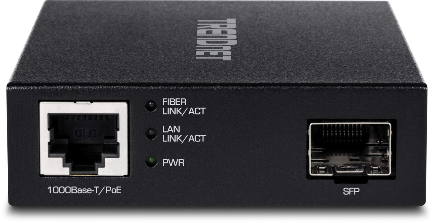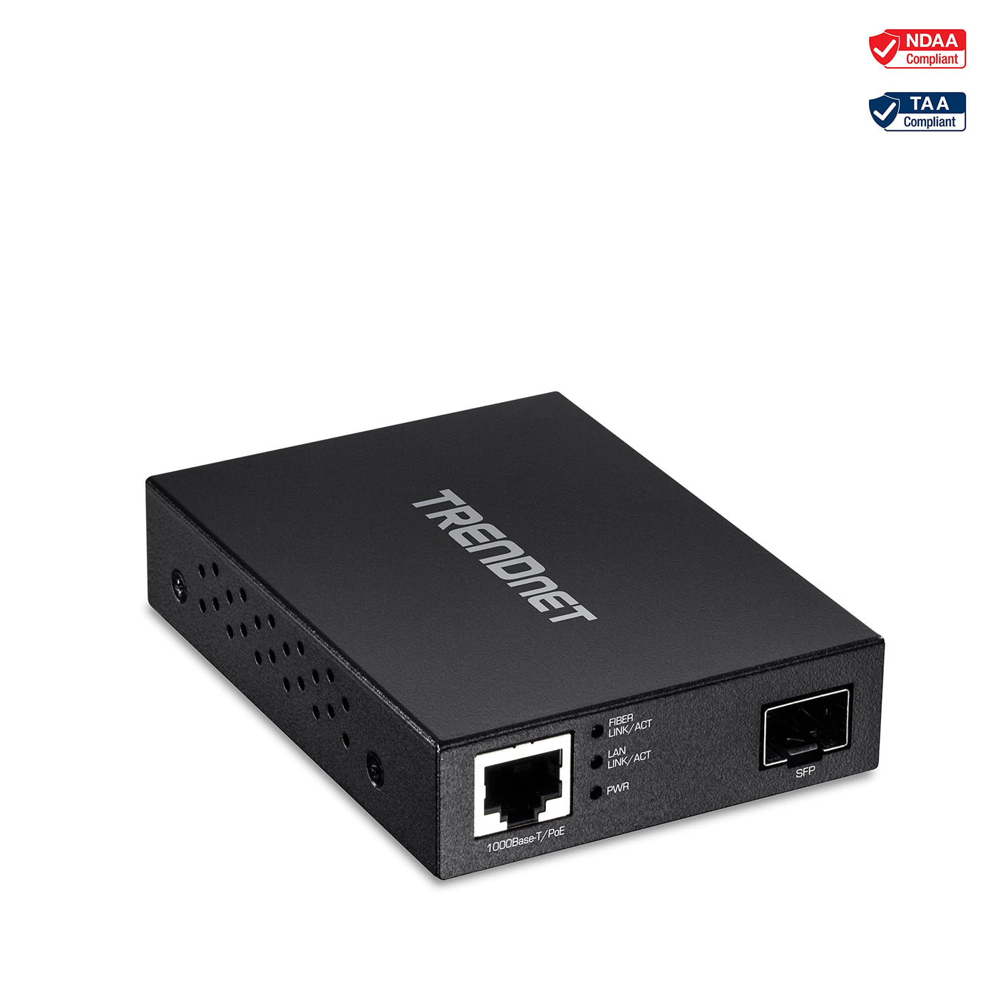 Trendnet Gigabit Poe Pd Sfp Fiber Media Converter, Poe Powered 1001000Base T To Sfp Fiber Media Converter, Compact Design, Tfc P