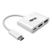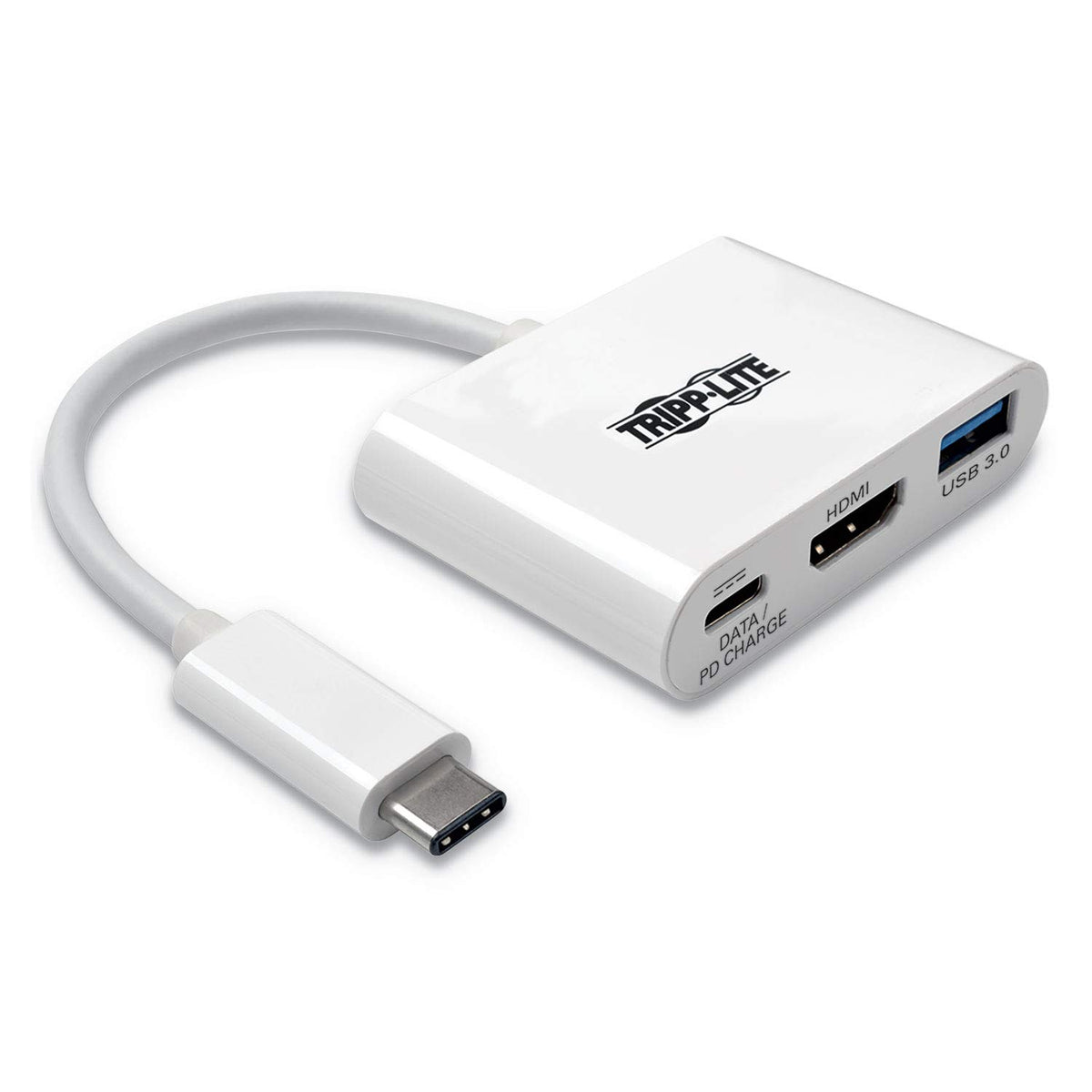 The U444-06N-H4U-C Usb 3.1 Gen 1 Usb-C To Hdmi Displayport Alternate Mode External Video Adapter Supports Usb Displayport Alternate Mode For Displaying Audio/Video Signals On An Hdmi Monitor, Television Or Projector Via Your Computer, Laptop Or Tablet S Usb-C Port. It S An Ideal Tool For Multitasking, Editing Documents, Giving Presentations At Trade Shows And Conferences, Or Watching Movies And Playing Video Games.No Software, Drivers Or External Power Supply Is Needed. Connect The Adapter S Usb-C Male Plug To The Usb-C Port On Your Device. Then, Connect The Adapter S Female Hdmi Port To A Monitor Using An Hdmi Cable (Such As Tripp Lite S P568-Series) To Enjoy Full Hdmi Video And Audio. The U444-06N-H4U-C Supports Ultra High Definition (Uhd) Video Resolutions Up To 3840 X 2160 (4K X 2K) At 30 Hz.The U444-06N-H4U-C Includes A Usb 3.1 Hub Port For Connecting Usb-A Peripherals, Such As A Thumb Drive Or Printer. It S Backward Compatible With Previous Usb Generations And Supports Usb 3.1 Gen 1 Data Transfer Rates Up To 5 Gbps.A Usb-C Charging Port Supports Power Input Up To 20V 3A (60W). It Powers The Device That The U444-06N-H4U-C Is Plugged Into By Connecting The Charging Port To A Usb-C Wall Charger.3-Year Limited Warranty