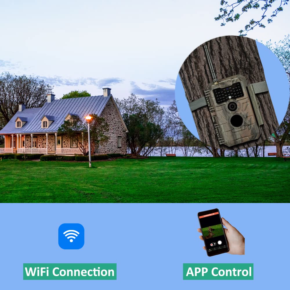 Innovative Wi-Fi Connection: The Gardepro E6 Features Super Low-Power-Consumption Wi-Fi And Compatible With Bluetooth Technology, Comes With A Free And Easy-To-Use App (Gardepro Mobile), Allows You More Easily To Operate Your Cameras. No Monthly Fee. No Remote Control Is Required. All You Need To Do Is Stay Within The Wi-Fi Signal Range. | More Reliable Signal: The E6 Cam Is Equipped With An Antenna For More Reliable Wi-Fi Signal, Significantly Reduces The Possibilities Of Wi-Fi Disconnection, Ensures High-Speed Transmission Speed Between Your Mobile Phone And Your Camera. | 32Mp Still Image And 1296P Video: Featuring A Premium Optical Lens With Wide 110