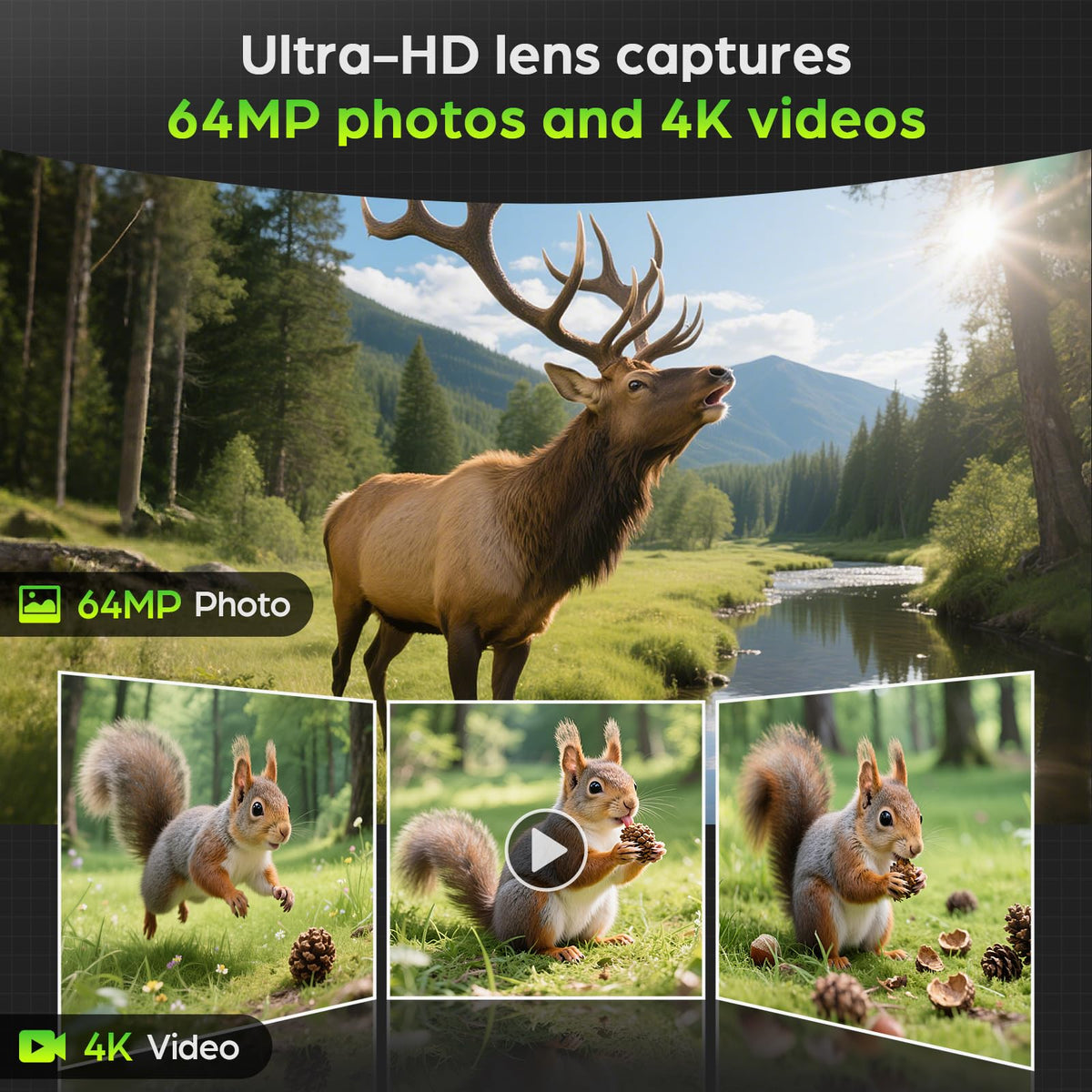Experience Nature Like Never Before - With Our Solar-Powered Wifi Trail Camera Capture Every Moment, Day Or Night, With This Advanced Trail Camera Built For Wildlife Lovers, Hunters, And Property Owners. Featuring A Powerful Combination Of Solar Charging, Wifi Control, And High-Definition Imaging, This Device Gives You Unmatched Performance And Flexibility In The Wild. Equipped With A 64Mp Image Sensor And 4K Video Recording, It Delivers Stunning Detail Whether Youre Monitoring Game Trails Or Keeping An Eye On Your Farm. The 850Nm Low-Glow Infrared Leds Provide Enhanced Night Vision Up To 65Ft Without Disturbing Animals. Thanks To The Fast 0.2-Second Trigger Speed And 5-Shot Burst Mode, Youll Never Miss A Fleeting Moment. With Multiple Power Options-Including A Built-In 2600Mah Rechargeable Battery, Solar Panel, Aa Batteries, And Dc Input-You Can Count On Continuous Operation Without Constantly Changing Batteries. Plus, The Included 32Gb Sd Card And Loop Recording Ensure You Never Run Out Of Storage Space. Use The Trailcam Go App To Connect Via Wifi (Up To 49Ft Range) For Instant Preview, Download, And Configuration. Whether Youre Tracking Deer, Observing Nocturnal Animals, Or Securing Your Land, This Ip66 Waterproof Trail Cam Is Built To Perform In Extreme Conditions From -5F To 140F. Perfect For: Wildlife Monitoring Hunting Game Tracking Farm And Ranch Security Remote Property Surveillance Outdoor Research Or Observation Discover More. Disturb Less.