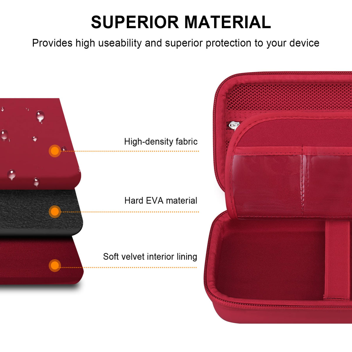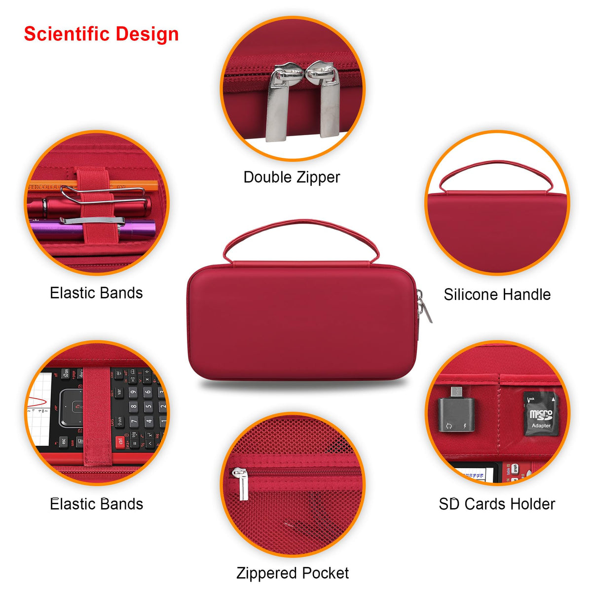 Elonbo Carrying Case For Texas Instruments Ti Nspire Cx Ii Cas/Cx Ii/Cx/Cx Cas Color Graphing Calculator, Extra Mesh Pocket Fits Charging Cable, Charger, Manual, Red