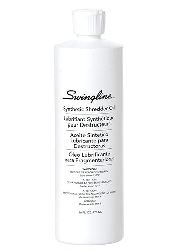 Swingline Synthetic Shredder Oil View Larger Oiling Cutters Regularly Is Essential To Shredding Performance.Swingline Shredder Oil Is Specifically Designed To Lubricate The Cutters In Your Shredder. Swingline Oil Is Synthetic And Will Not Cause Build-Up On Any Shredder Parts. The Cutters Of A Well-Oiled Shredder Require Less Torque To Shred Effectively. As A Result, The Cutters Move Freely And Easily To Power Through The Maximum Document Capacity Of Any Particular Shredder Model. Protect Your Investment And Extend The Life Of Your Shredder With Regular Use Of Swingline Shredder Oil.Swingline Synthetic Shredder Oil Can Safely Be Used To Lubricate The Cutters On Any Shredder, Regardless Of The Manufacturer. Swingline Brand Oil Must Be Used On All Swingline Or Gbc Brand Shredders In Order For The Warranty To Remain Valid. Standard Shredders Require Manual Oiling. How Does It Work? Step 1Pour A Few Streaks Of Oil Onto A Blank Piece Of Paper. View Larger Step 2Shred The Oiled Sheet. The Cutters Will Be Lubricated As The Paper Passes Through.View Larger Step 3Run The Shredder In Reverse To Help Distribute The Oil Evenly. View Larger Selfoil Shredders Feature Automated Oiling. How Does It Work? Step 1The Selfoil Indicator Will Light Up When The Oil Needs To Be Refilled. View Larger Step 2Locate The Designated Shredder Oil Reservoir.View Larger Step 3Pour Oil In Reservoir Up To The Fill Line. Cutters Will Be Lubricated Automatically. View Larger