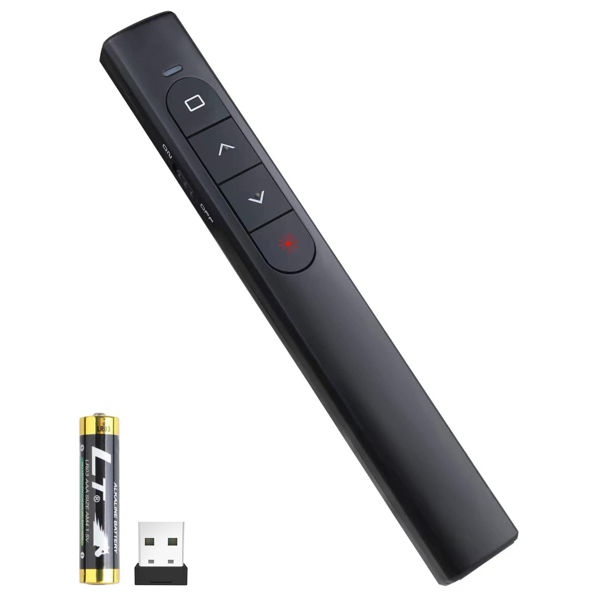 Ubuyone Wireless Presenter Pen Support Hyperlink Compact And Delicate Wireless Presenter Demonstrator, It Has The Advantages Of Portable, Beautiful Appearance, Simple Operation, Etc, Which Is The Best Choice For Gift And Self-Usespecifications: # Battery: 1Pcs Aaa Battery (Not Included) # Presenter Pen:139 * 19 * 196 Mm 547*074*049 In #Usb Wireless Receiver: 275 * 13 * 56 Mm 108*05*022In # Output Power: Less Than 5Mw # Distance: > 100M # Working Voltage: 15V # Wavelength: 650Nm # Color: Red # Material: Abs # Color: Black # Weight: 25G # Wireless Presenter Control Distance: 50Feet (The Effective Distance Will Change With The Surrounding Environment)Package Listing: # 1Awireless Presenter Pen # 1Awireless Receiver # 1Awarning Sticker # 1Auser Manualsafety Warning: # Be Warned That 24G Hz Pointer Are Not Toys, They Should Never Under Any Circumstances Be Directed Into Peopleas Eyes Or At Passing Aircraft # The Pointer Is Not A Toy And Should Not Used By Anyone Under 18 # The Pointer Can Be Dangerous If Not Used Properly