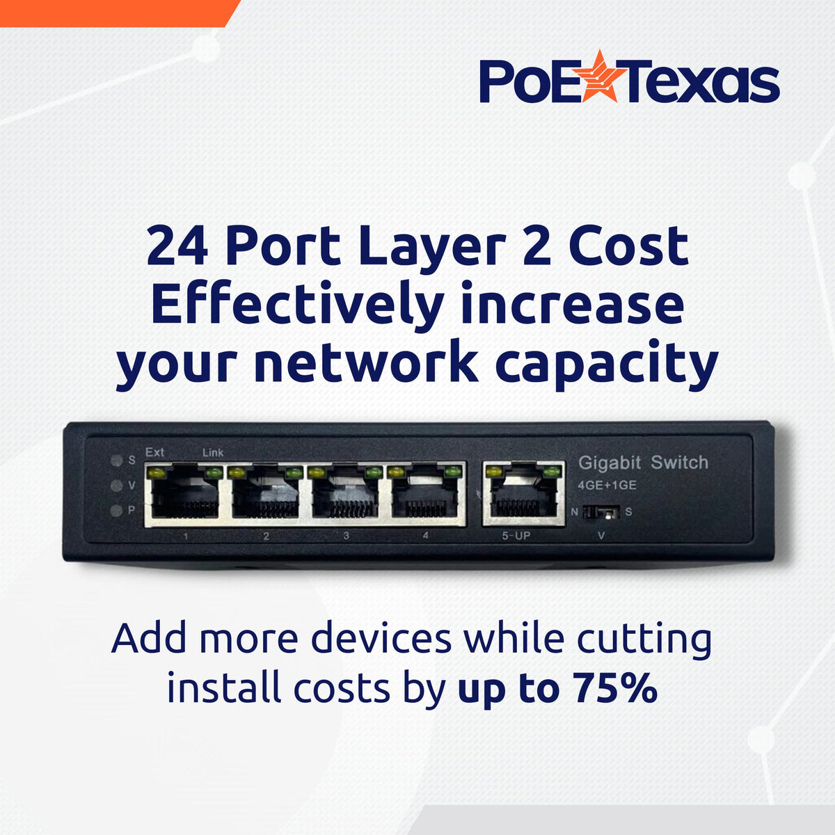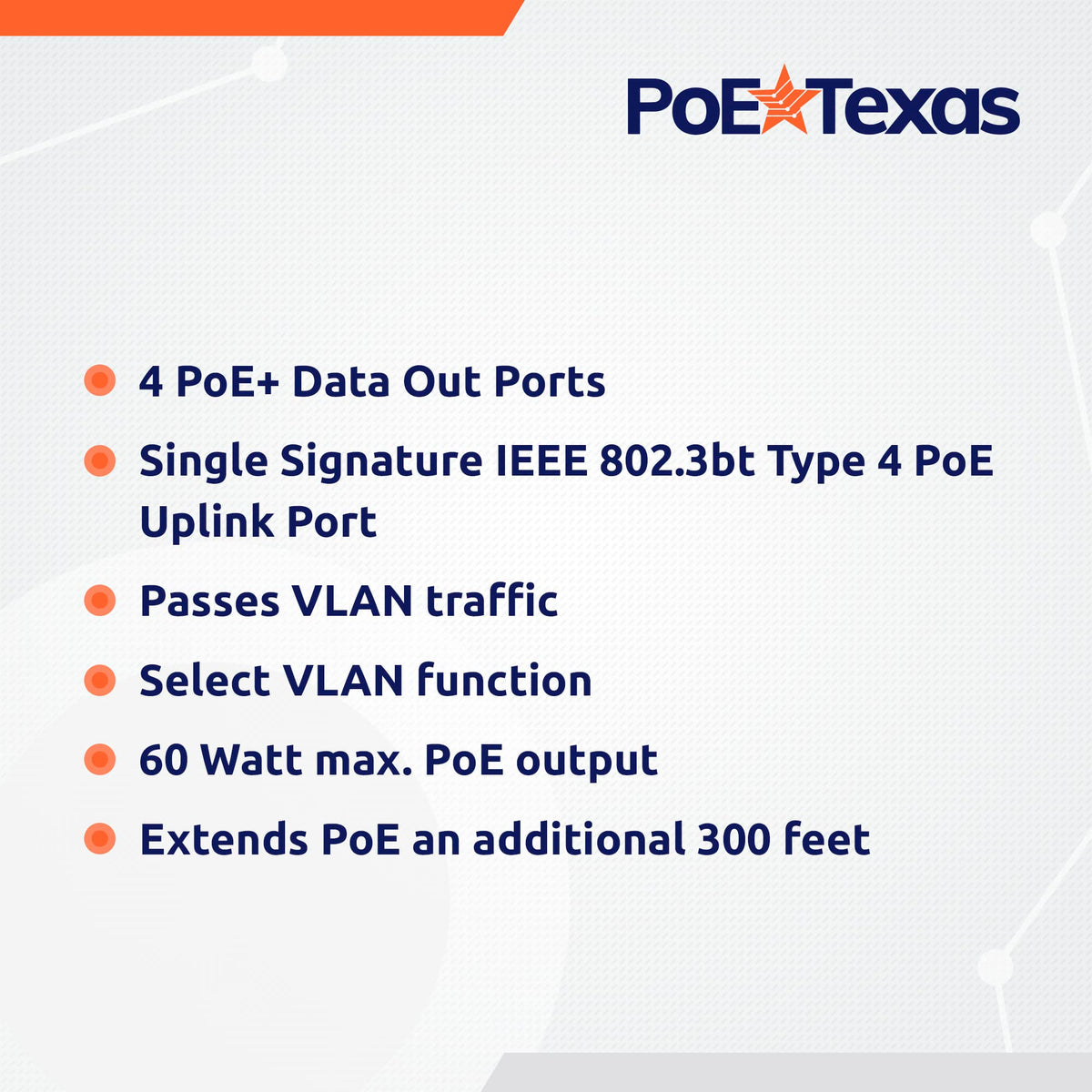 Four Poe+ Ports On One Network Cable Run. Power Up To Four Ieee 802.3Af Or Two 802.3At Ip Phones, Wifi Access Points, Or Other Low Voltage Devices Over 600 Feet From The Poe Source. Power This Switch Via The Uplink Port With Your Existing 802.3Bt Switch Or A 55-Volt, 60-Watt Power Supply Like Our Bt-1-55V60W-In Midspan Injector.