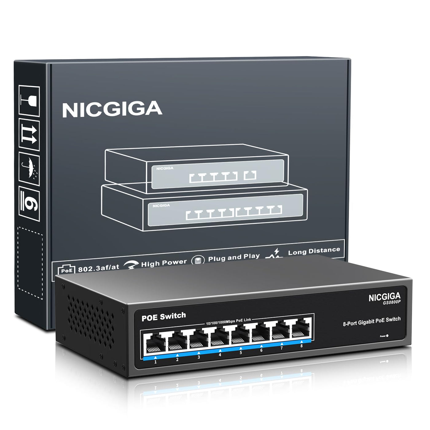 8 Port Gigabit Poe Switch Unmanaged, 8 Ports Poe+@120W, 802.3Af/At, Nicgiga 8 Port 1000Mps Network Power Over Ethernet Switch, F