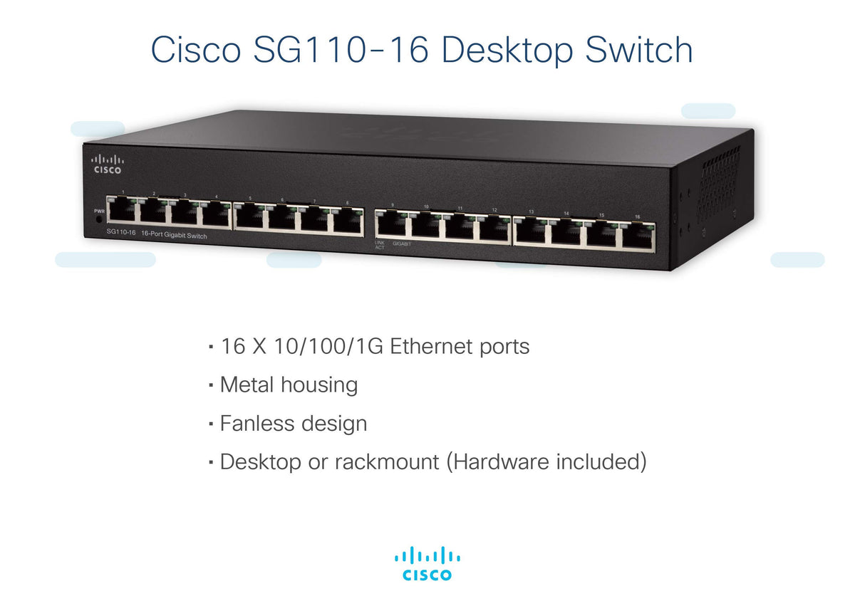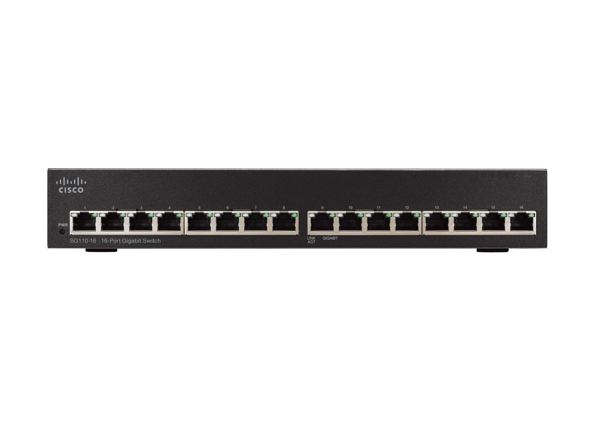 Cisco Small Business 110 Unmanaged L2 Gigabit Ethernet (10/100/1000) Black 16X Rj 45, 32 Gbps, 23.8 Mpps, 8000 Entries, 110 240V
