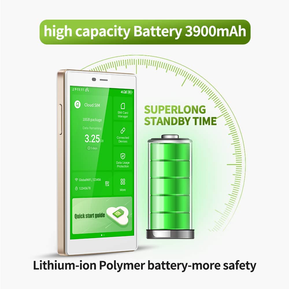 - Large HD Screen and User-Friendly Interface: The 5.0 HD display provides an intuitive visual interface, making it easy to manage data usage, connected devices, and SIM card settings. Pre-installed apps like Map, Translator, and Currency Calculator enhance your travel experience, while the powerful 3900 mAh battery guarantees up to 10 hours of uninterrupted connectivity.
