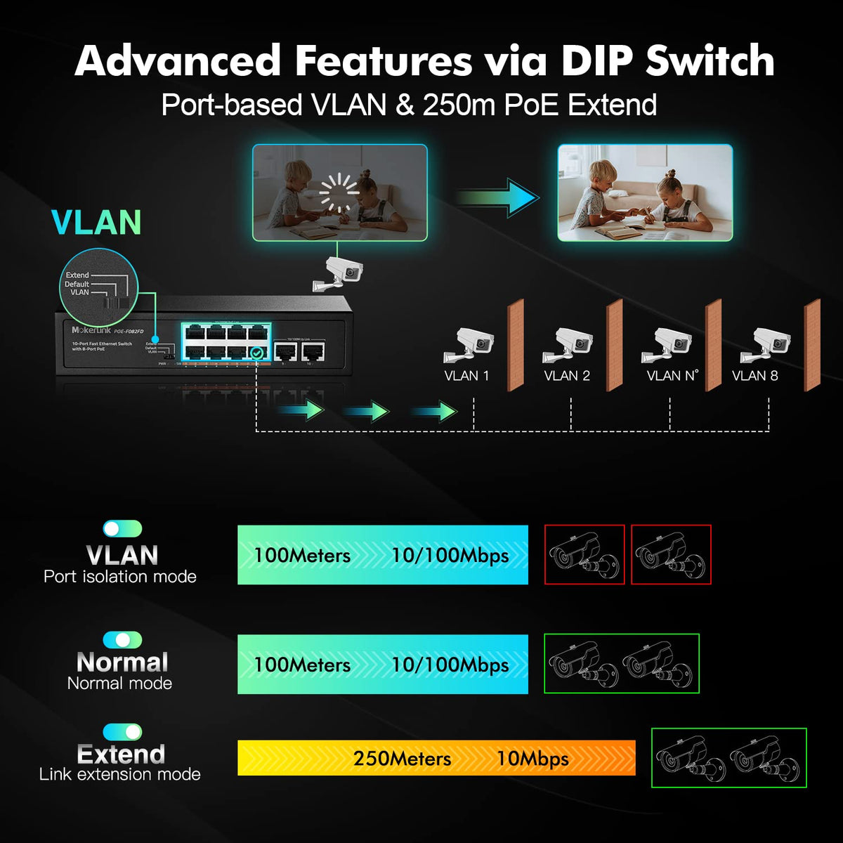 Mokerlink 8 Port Poe Switch With 2 Fast Ethernet Uplink