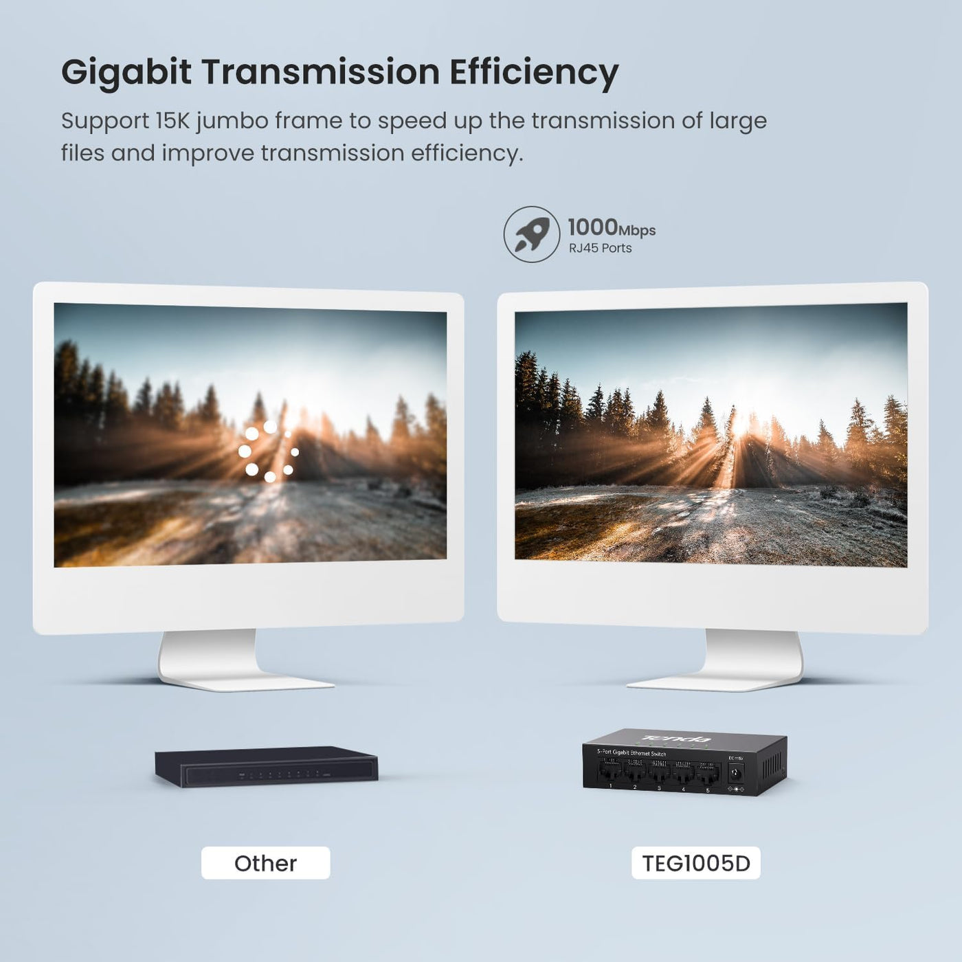 Tenda Teg1005D 5 Port Gigabit Switch, Unmanaged Ethernet Switch, Network Splitter With Traffic Optimization, Plug & Play, Fanles