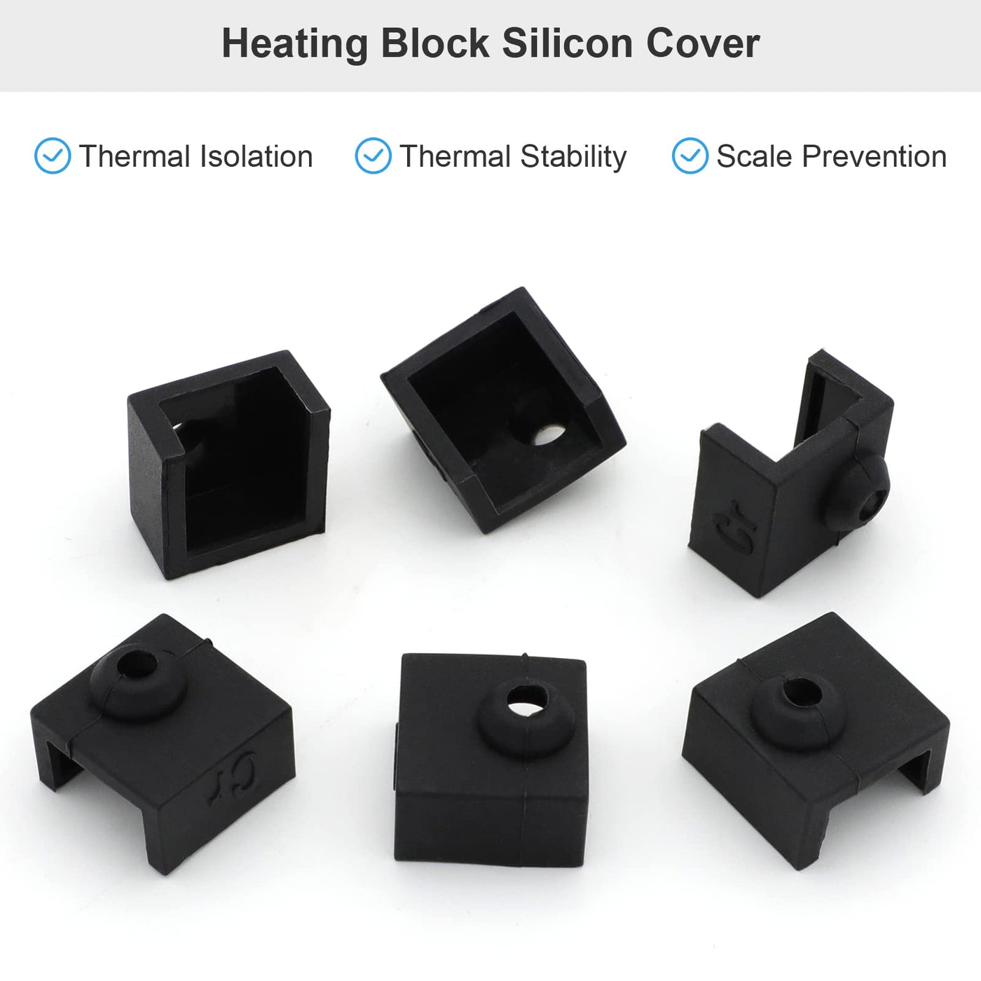 Q: How many silicone socks are included in the package?A: The package includes 6 pieces of silicone covers designed for MK7, MK8, and MK9 hotend heater blocks. This allows you to have multiple replacements on hand or to outfit several printers.