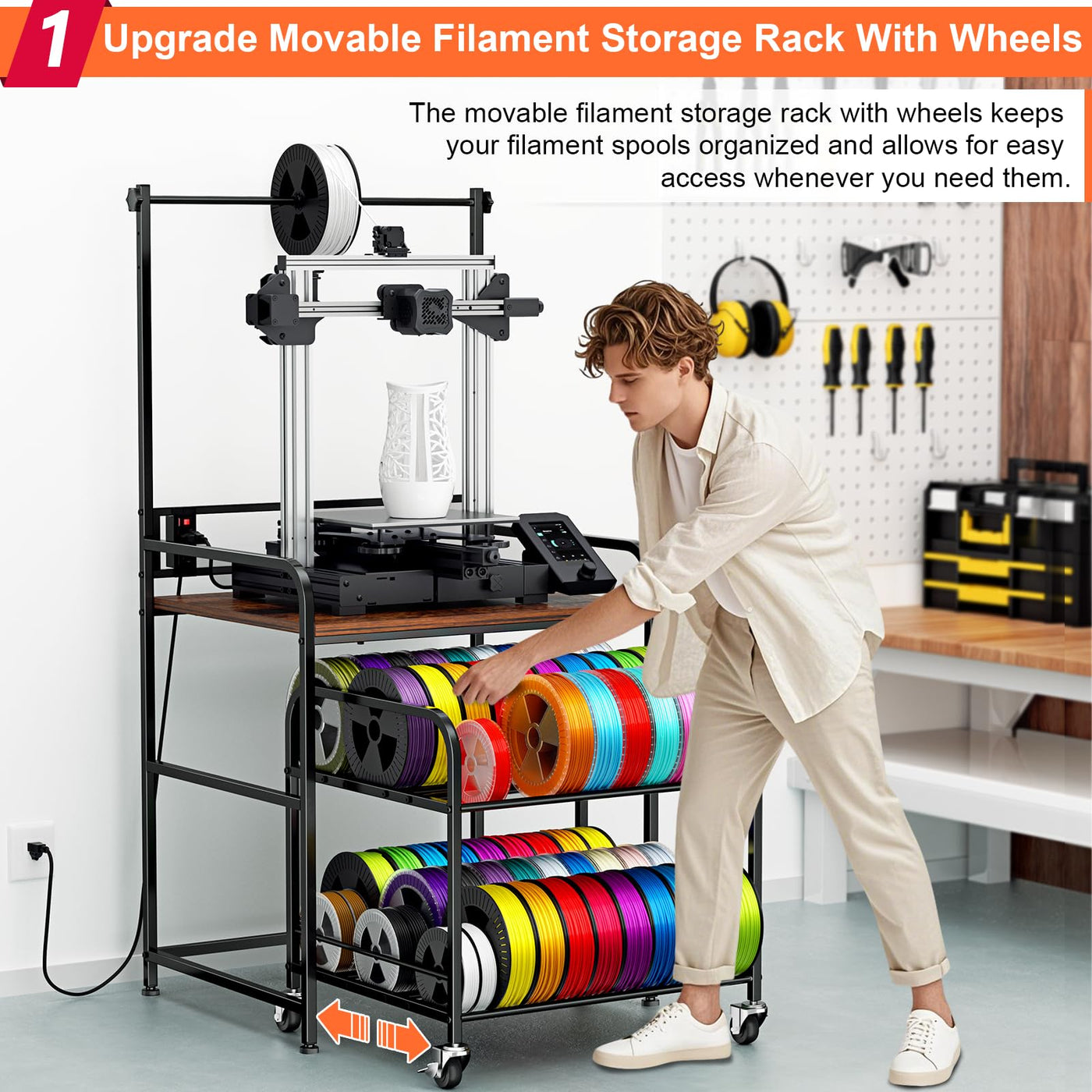 3D Printer Rack Filaments Storage - Rolling 3D Printing Stand Filament Organizer