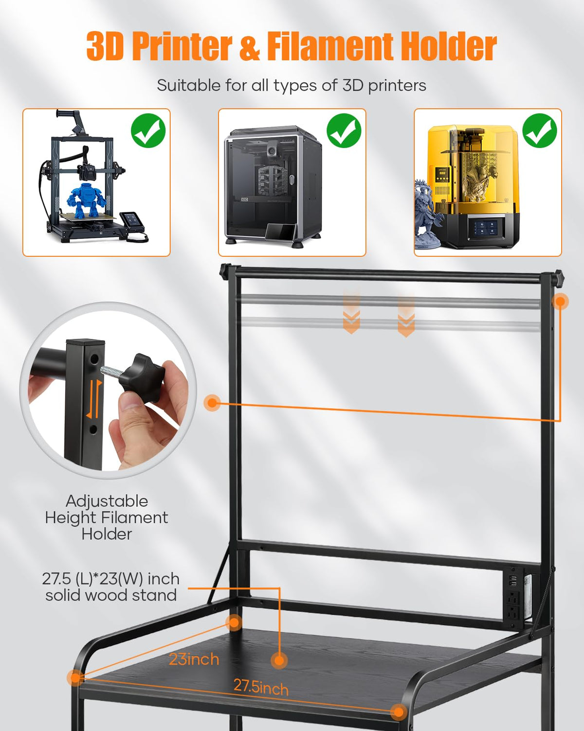 Ahowpd 3D Printer Rack Filaments Storage - Rolling 3D Printing Stand Filament Organizer, Spools Holder Racks Cart With Wheels, H