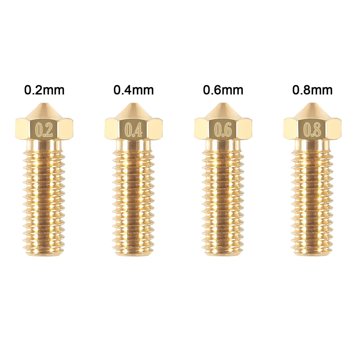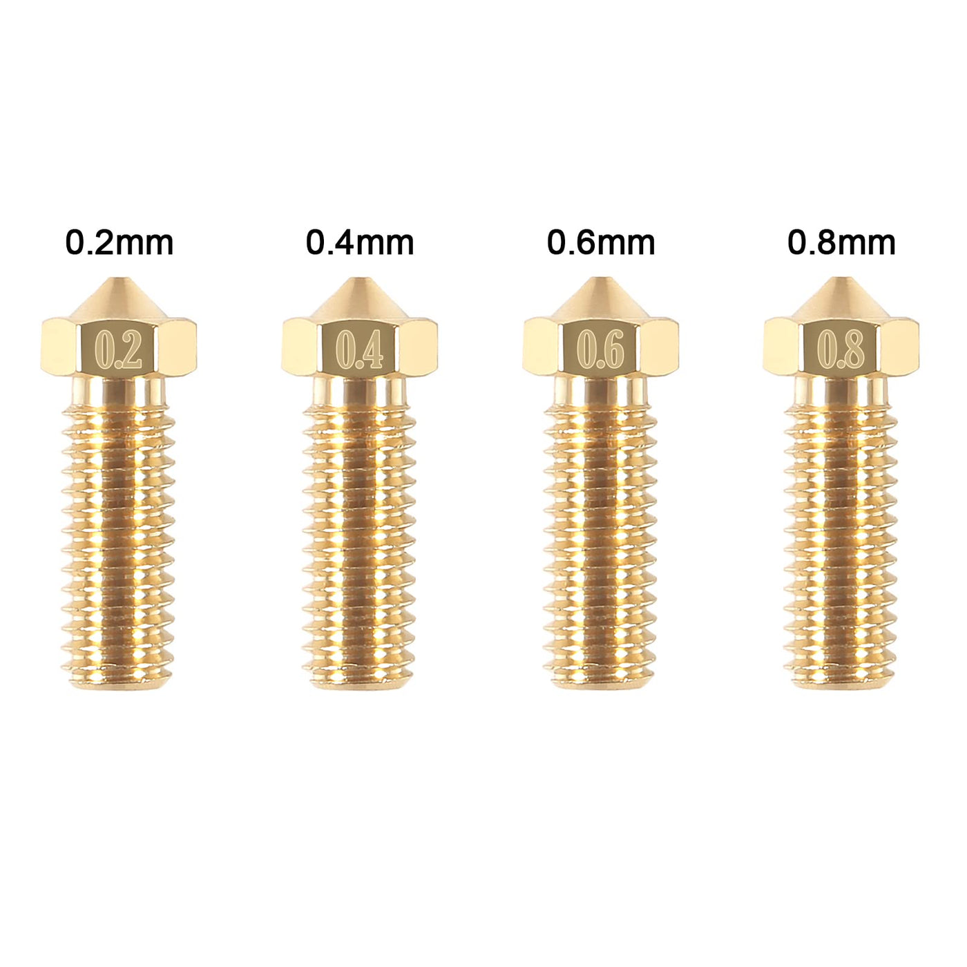 Q: What are the different nozzle sizes included in the AITIAO Brass Volcano Nozzle Kit?A: The AITIAO Brass Volcano Nozzle Kit includes four different nozzle sizes: 0.2mm, 0.4mm, 0.6mm, and 0.8mm. You can choose the appropriate size based on your specific 3D printing needs.