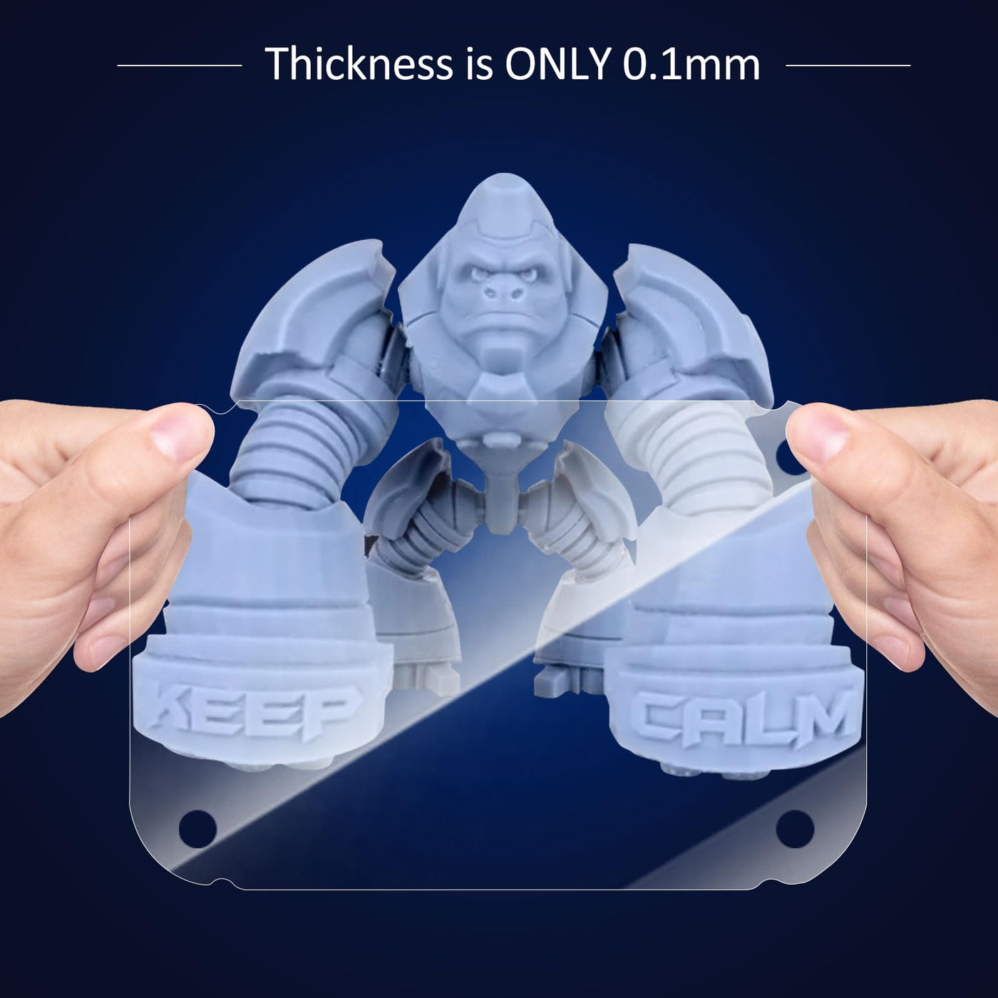 Q: What thickness is the Anycubi Photon Mono 2 Screen Protector, and how does it affect printing?A: The Anycubi Photon Mono 2 Screen Protector has a thickness of 0.1mm. This thickness ensures high light transmittance of 96.9%, which maintains the stability of UV lighting and does not affect the printing results.