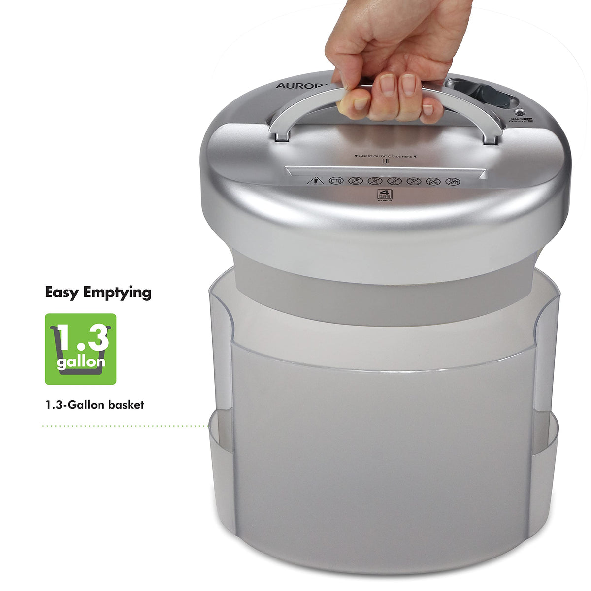 Aurora Au420Xz 4-Sheet Cross Cut Paper And Credit Card Shredder With Translucent Wastebasket.Destroy Sensitive Information With This Compact Desktop Paper Shredder, Designed For Economical Document Security. Durable Steel Cutters Destroy Documents Into Confetti, Shredding Up To Four-Folded Sheets Of Paper Or One Credit Card Per Pass. Au420Xz Features Convenient Handle Design For Easy Lifting, A Letter Opener, And Detachable Power Cord; This Shredder Is Ideal For Any Home Office Environment.