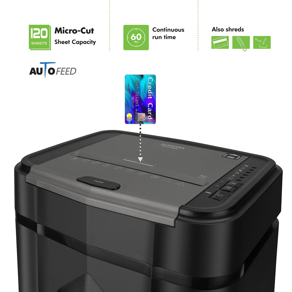 Aurora Professional Grade Au125Ma 120-Sheet Auto Feed High-Security Micro-Cut Paper Shredder/60 Minutes/Security Level P-5