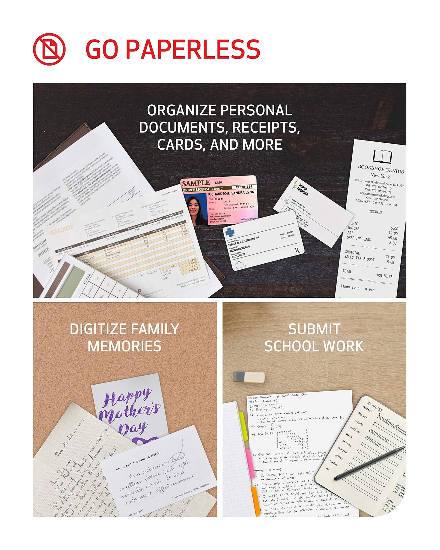 Q: What types of documents can I scan with the Canon imageFORMULA R10?A: The Canon imageFORMULA R10 is versatile and can scan various types of documents including receipts, business cards, plastic or embossed cards, reports, legal documents, and more, making it ideal for both personal and professional use.