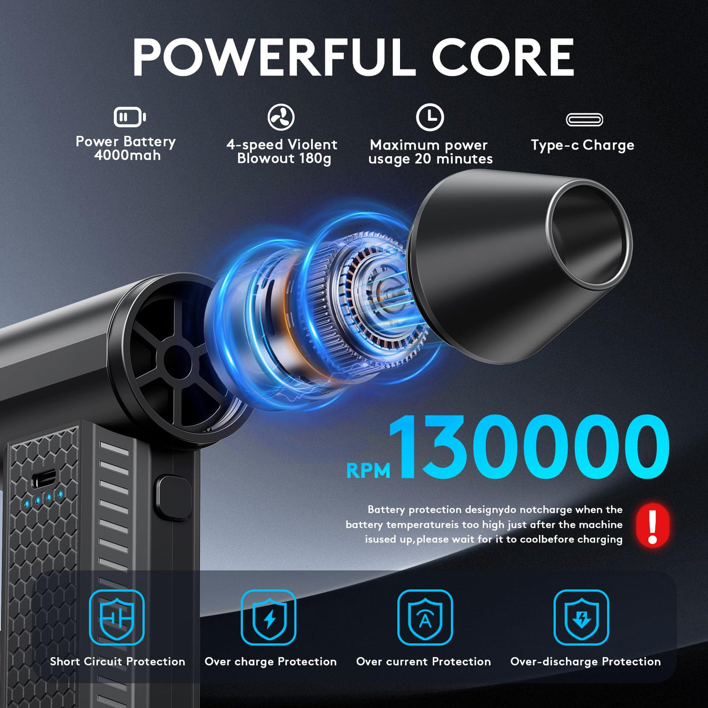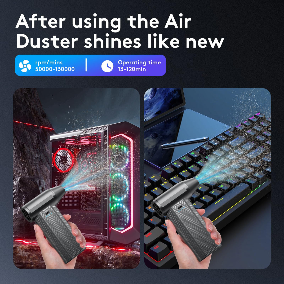 Compressed Air Duster Kit-Blower-Pc Duster Electric-130000Rpm- Replace Compressed Air Can-Keyboard Clean-Car Mini Snow Blowers-C
