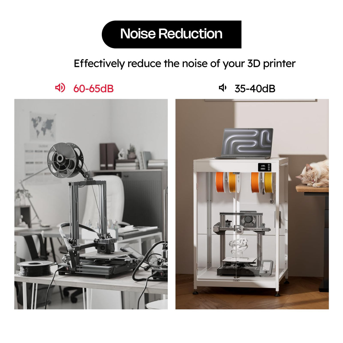 Crafit 3D Printer Enclosure With Ventilation, Hold 4 Spools, Built-In Thermo-Hygrometer And Led Light, Noise Reduction, Dustproo