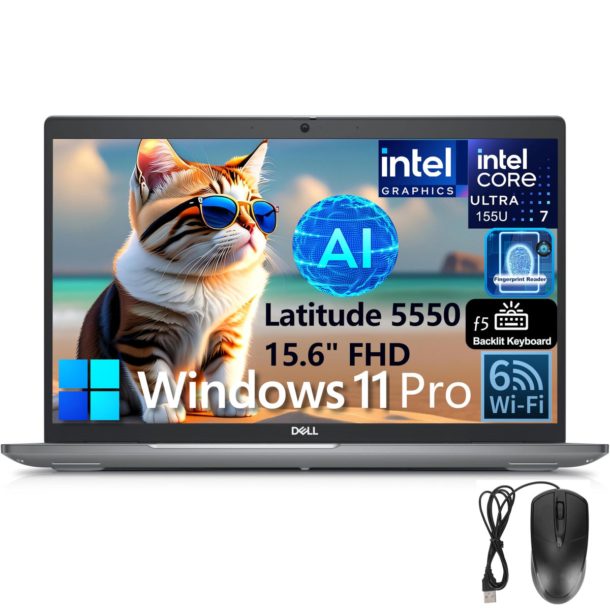 Dell Latitude 5550 15 Business Ai Laptop, 15.6 Fhd Computer, Intel Ultra 7 155U (Beat I7-1355U), 32Gb Ddr5 Ram, 1Tb Pcie Ssd, Wi