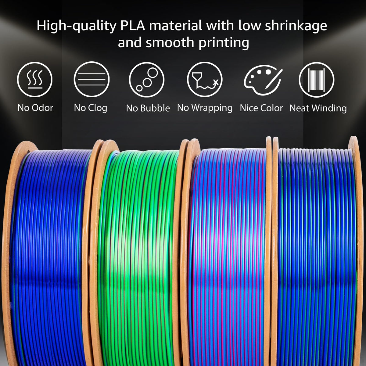 Silk 3D Printing Filament Pla+ Tricolor & Dual Color 4-Pack Bundle - Dikale 1.75Mm, 250G X 4 Spools, Rose Red+Sky Blue+Green, Rose Red+Dark Blue+Green, Rose Red+Sky Blue, Dark Blue+Green