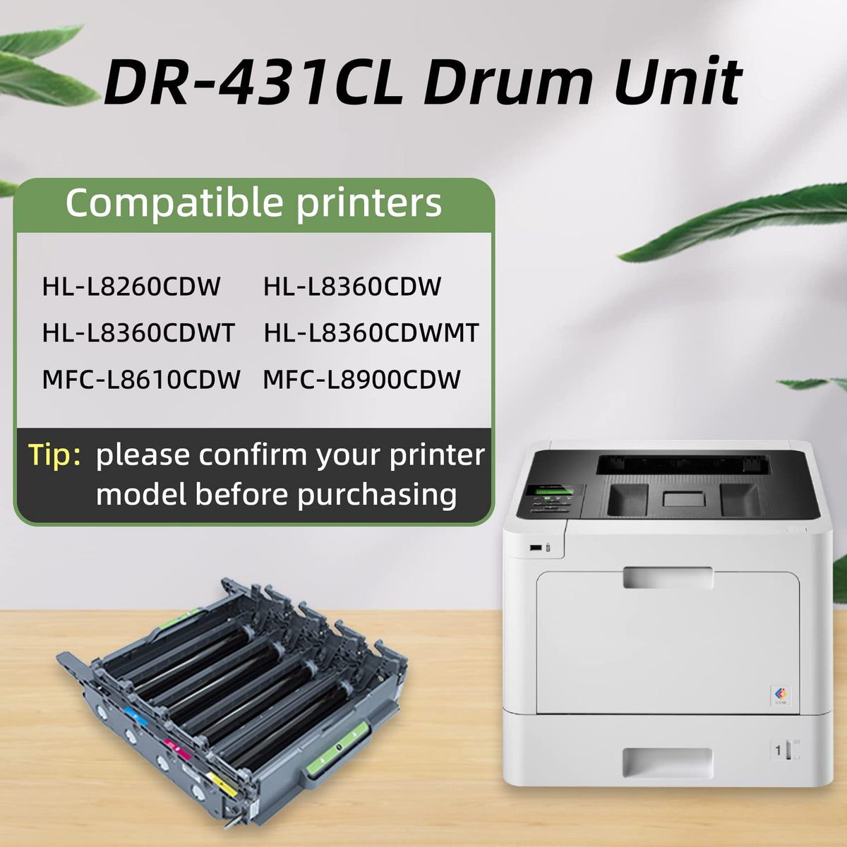 Printer Dr431Cl Drum Unit&Nbsp;Product Specifications: Replace Part Number: Dr431Cl, Dr-431Cl 30000 Page Yield&Nbsp;Compatible Models For Brother Hl-L8260Cdw Printer For Brother Hl-L8360Cdw Printer For Brother Hl-L8360Cdwt Printer For Brother Hl-L8360Cdwmt Printer For Brother Mfc-L8610Cdw Printer For Brother Mfc-L8900Cdw Printer&Nbsp;Package 1* Dr431Cl Drum Unit&Nbsp;Notes1. Please Check Your Model And Part Number Carefully Before Ordering. If You Have Any Questions About Model Or Installation Or Other Aspects, Please Email Us.2. If You Are Not Satisfied With This Item, Please Feel Free To Let Me Know. We Will Get Back To You Within 24 Hours. We Will Provide A Replacement Or Help You Solve It Perfectly.