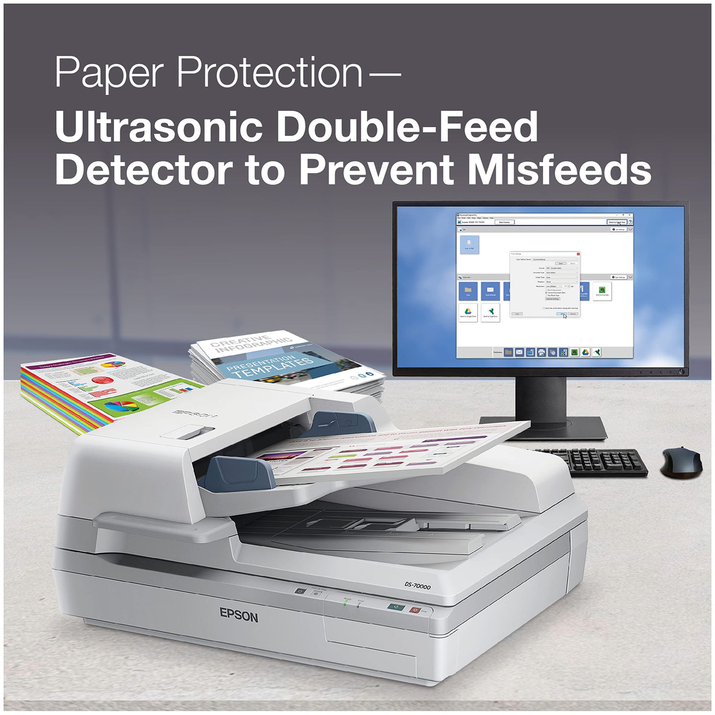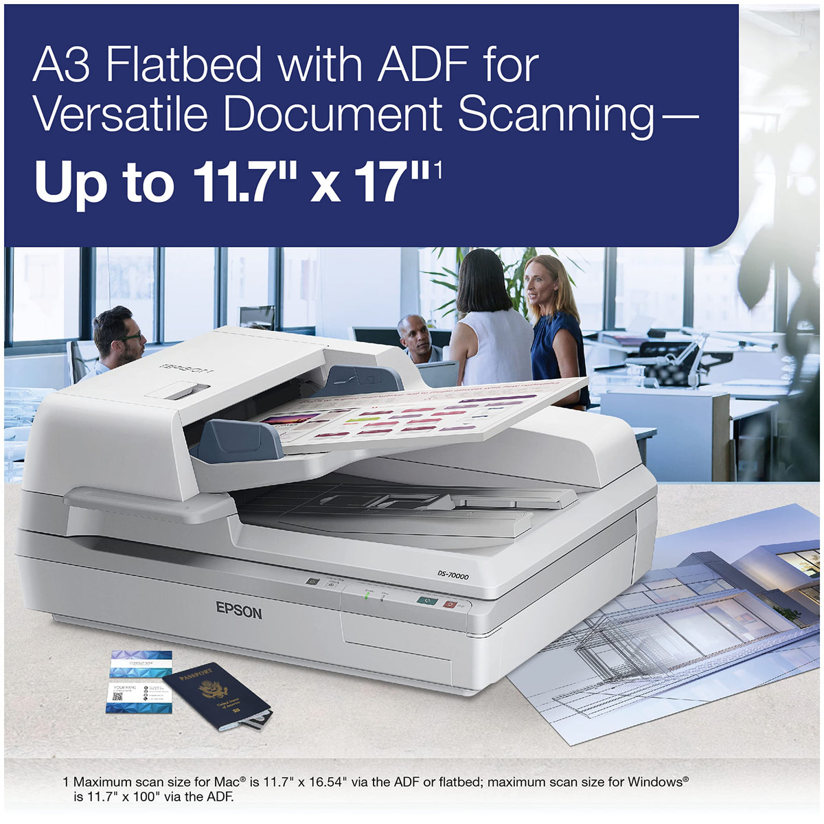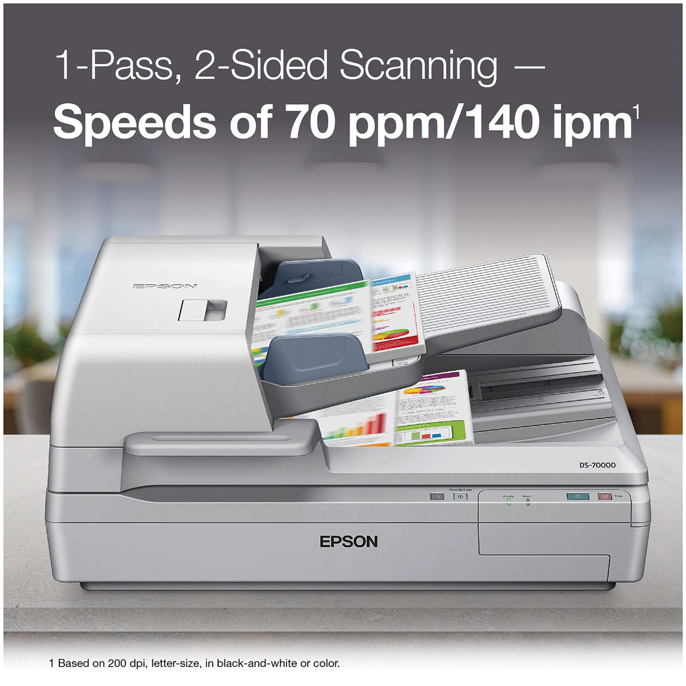 Descriptionthe High-Speed, Large-Format Scanner Built For Productivity.Now, Your Workgroup Can Take Advantage Of Ultra-Fast 2-Sided Scanning Of Critical Business Documents. The Workforce Ds-70000 Delivers Surprising Speeds, Racing Through 2-Sided Documents In Just One Pass, Scanning Everything From 2.7'' X 4.7'' Up To 11.7'' X 100''. Use The 200-Sheet Automatic Document Feeder (Adf) To Quickly Scan Stacks Of One- Or 2-Sided, Large-Size Documents. Or, Use The 11.7'' X 17'' Flatbed To Scan Drawings Or Maps, Hard-Bound Books Or Other Odd-Sized Items. The Workforce Ds-70000 Blazes Through Each Task At Speeds Up To 70 Ppm/140 Ipm. And, It Consistently Delivers Vivid Colors And Crisp, Sharp Text Thanksto 600 Dpi, High-Resolution Scanning. It Even Makes It Easy To Dropout Selected Colors Or Choose A Color And Convert It To Black. With This Versatile Performer, You Get High-Volume, Precision Document Imaging. Plus, With Productivity Software Included And The Optional Networking Module, Each Member Of Your Team Can Access High Performance Scanning For Critical Project Needs. Power Consumption: Operating: 79 W|Standby: 12.5 W|Sleep: 1.5 W; Scanning Speed: 200 Dpi|B/W: Up To 70 Ppm / 140 Ipm With Adf|Color: Up To 70 Ppm / 140 Ipm With Adf|300 Dpi|B/W: Up To 50 Ppm / 100 Ipm With Adf|Color: Up To 50Ppm / 100 Ipm With Adf|600 Dpi|B/W: Up To 25 Ppm / 50 Ipm With Adf|Color: Up To 12Ppm / 24 Ipm With Adf