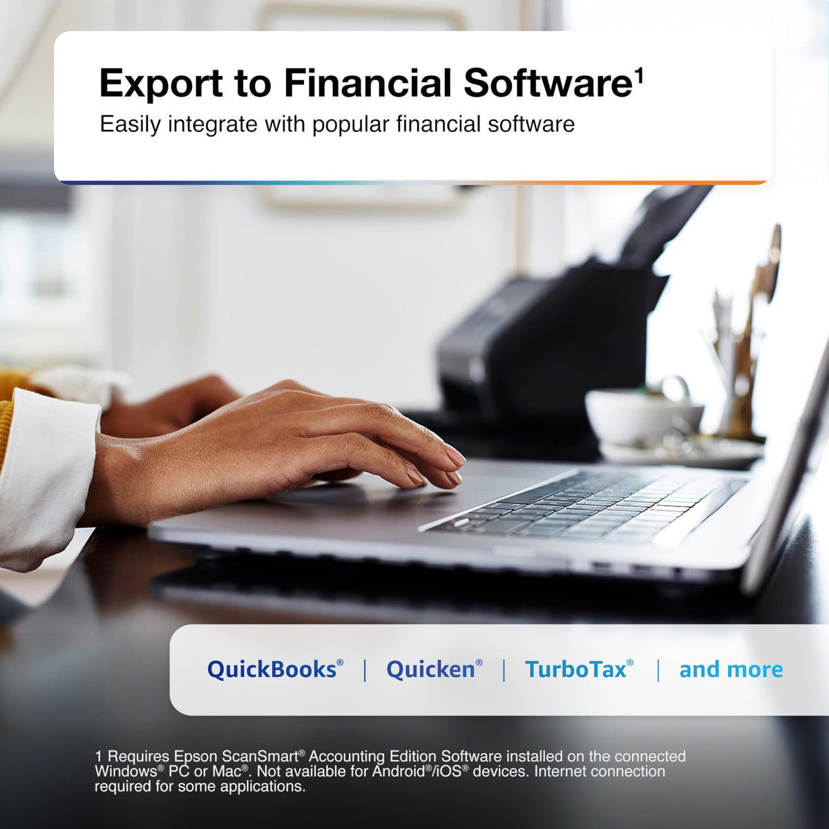 Q: How does the ScanSmart AI PRO technology improve my scanning experience?A: ScanSmart AI PRO technology intelligently converts and extracts scanned information into organized digital data. This feature helps you categorize receipts and invoices, making it easier to integrate the data into financial applications like QuickBooks and TurboTax.
