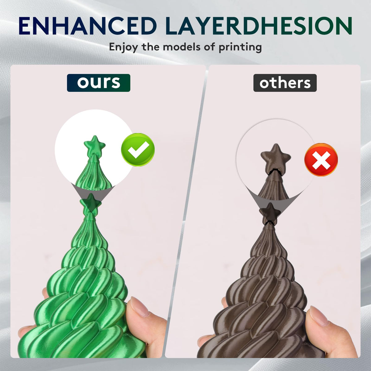 Q: What precautions should I take to avoid warping or stringing while printing with this filament?A: To prevent warping or stringing when using the ERYONE Silk Dual Color PLA Filament, ensure proper bed adhesion by setting the hot bed temperature between 60-70℃ and maintain optimal printing speeds as recommended for your specific printer setup.