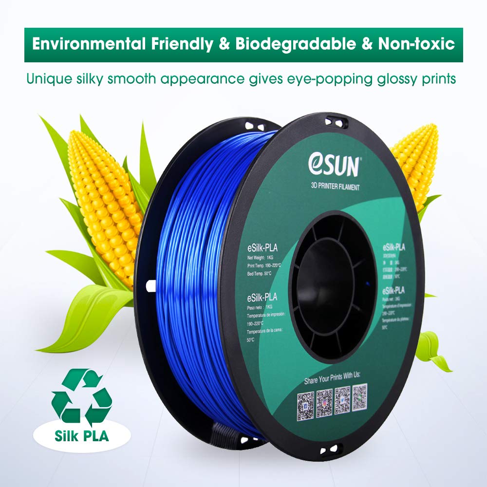 Silk Like -- Gorgeous Silk Finish | Esun Silk Pla 3D Printer Filament Vacuumed Sealed With Desiccant. | 1.75Mm Filament Diameter (Dimensional Accuracy +/- 0.03Mm) | Recommended Extrusion/Nozzle Temperature 190C - 220C | 1Kg Net (Approximately 2.2 Lbs) Silk Pla Filament With New Black Spool