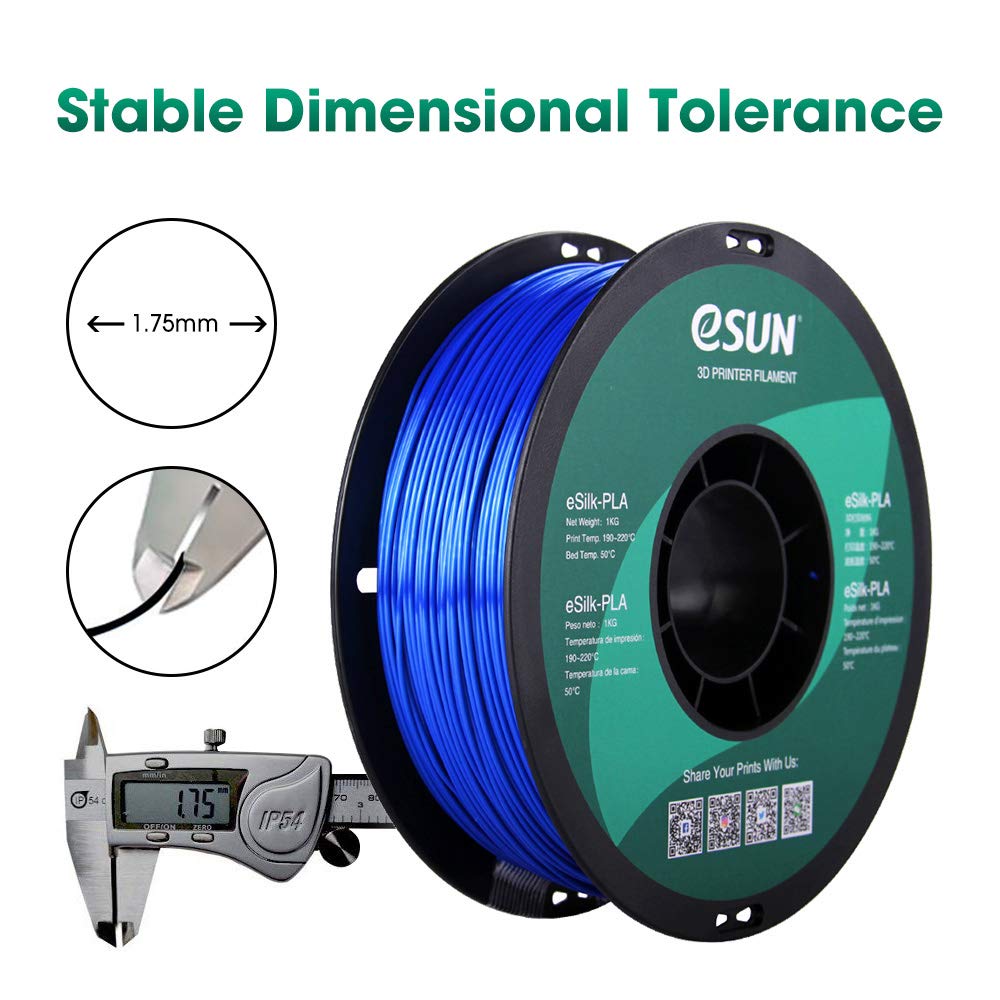 Esun Silk Pla 3D Printer Filament, Dimensional Accuracy +/- 0.03 Mm, 1 Kg Spool, 1.75 Mm, Blue