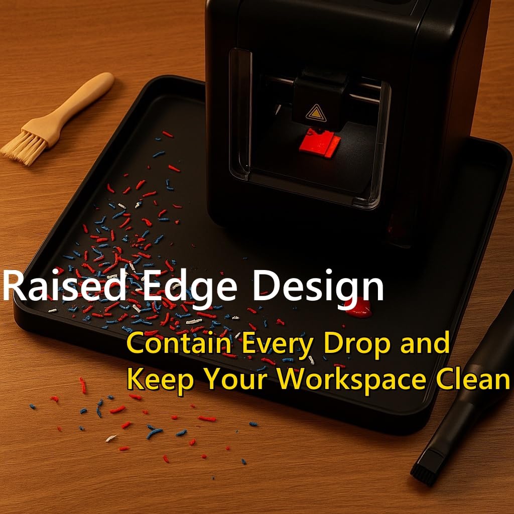 Upgrade Your 3D Printing Workspace With Our Silicone Printer Mat! Specially Designed For 3D Printers, This Mat Features Durable, High-Elasticity Silicone That Resists Slipping, Wear, And Heat. The Thick 1Cm Raised Edge Effectively Contains Resin Drips, Filament Scraps, And Debris, Keeping Your Desk Clean And Protected. The Shock-Absorbing, Anti-Slip Surface Reduces Printer Vibrations And Operational Noise, Ensuring More Stable Prints. Perfectly Sized For Popular Models Like The Ender 3, Flashforge Adventurer 3, And Other Compact 3D Printers. Flexible, Easy To Clean, And Highly Durable, This Silicone Mat Is A Must-Have Accessory For Hobbyists, Makerspaces, And Professional Studios Alike - Experience Cleaner, Quieter, And More Organized Printing Today!