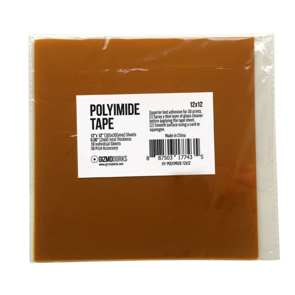 Gizmo Dorks Kapton Tape (Polyimide) For 3D Printers And Printing, 12 X 12 Inches, 10 Sheets Per Pack