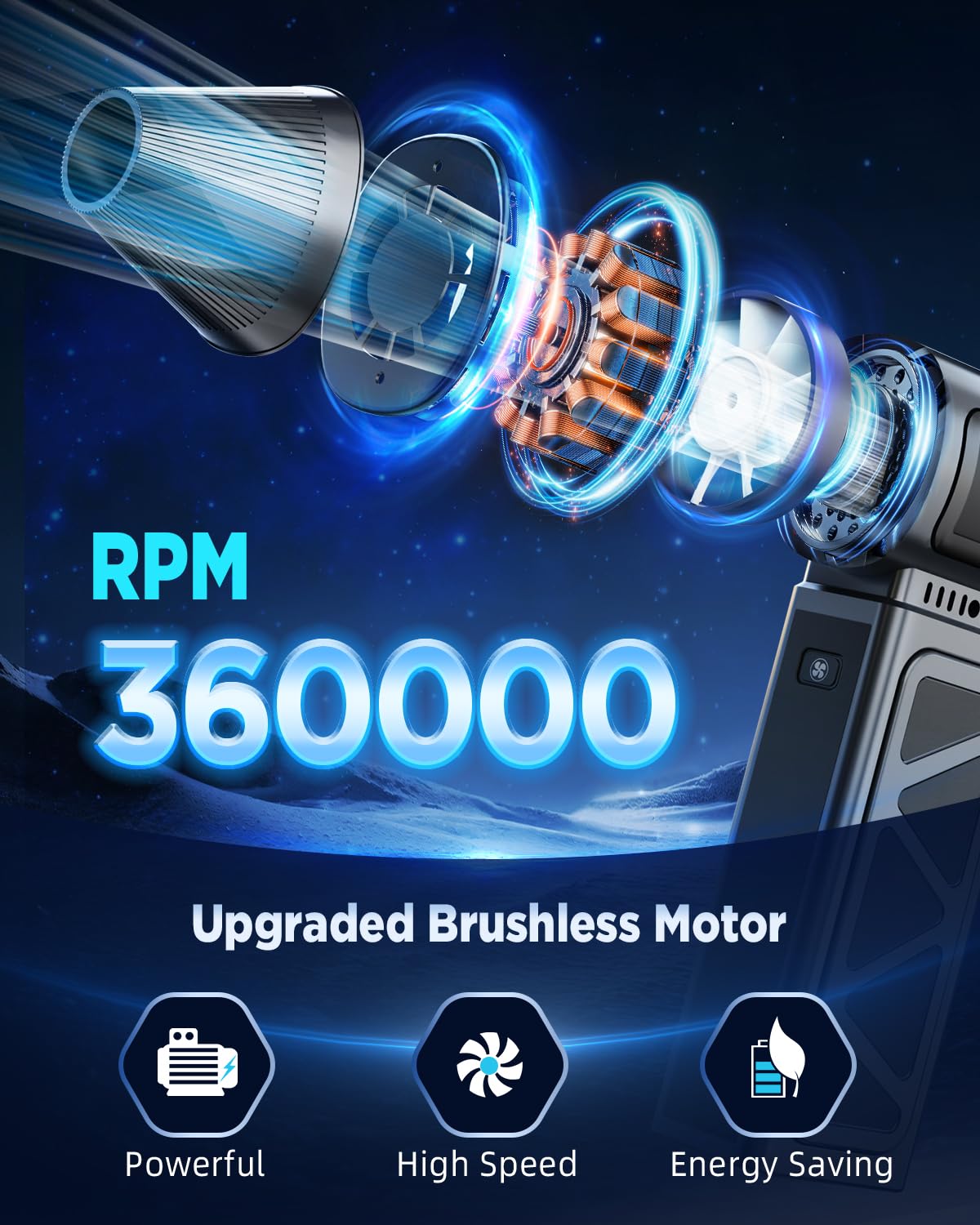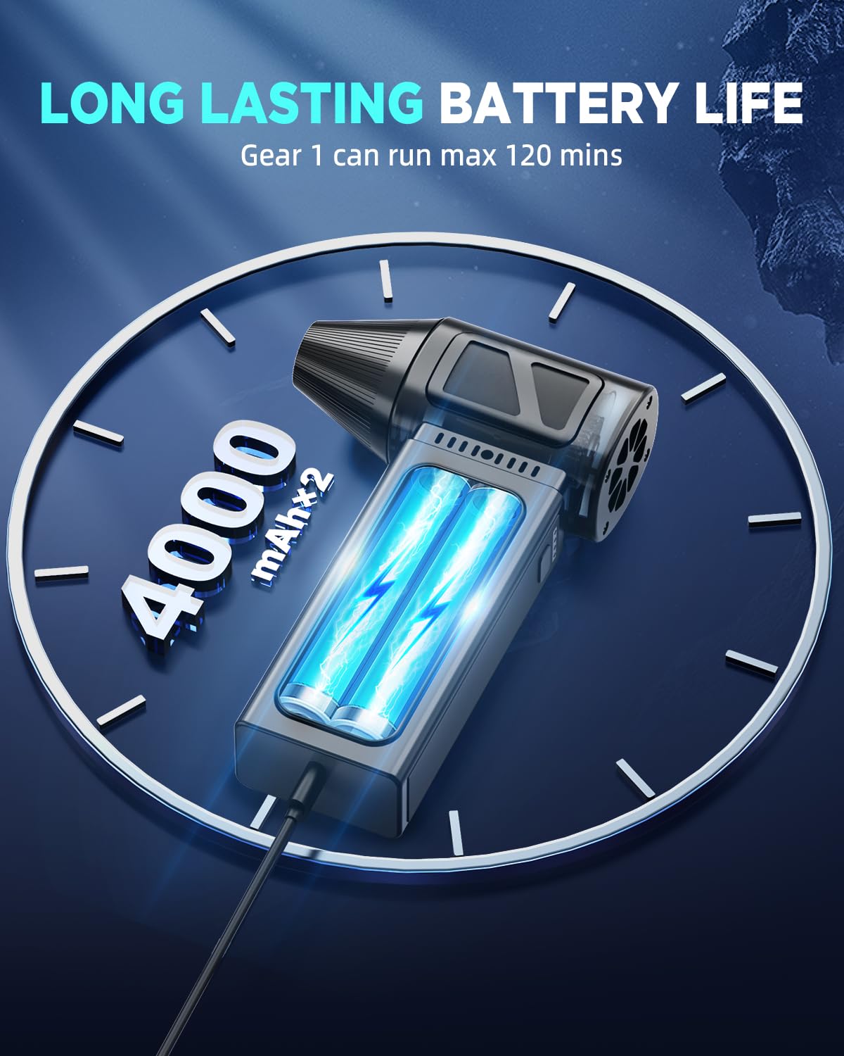 ? 2024 Latest Upgraded Compressed Air Duster, Equipped With 360,000Rpm Brushless Motor, 300G Blowing Force, Maximum Wind Speed Of 82 M/S, Can Quickly Remove Debris And Dust In The Crevices. ? The Electric Air Duster Collector Is Equipped With A Large-Capacity 2*4000Mah Battery, Which Has Temperature Protection, Current Protection And Short Circuit Protection. ? 5 Gears Are Available. 1St Gear Can Be Used Continuously For 120 Minutes. ? This Cordless Air Duster Can Be Used To Blow Away Hair, Fallen Leaves, Dust, Fire (Great For Grilling), And Snow For Both Indoor And Outdoor Use. ? The Compressed Air Blower Contains A Type-C Usb Cable, And It Only Takes 2.5 Hours To Fully Charge. ? The Jet Dry Blower Is Compact And Comfortable In Design And Easy To Hold. It Is Small In Size, Lightweight And Easy To Carry. ? Lifetime Customer Service And 2-Year Return And Exchange Support. If You Need Help With This Product, Please Feel Free To Contact Us.